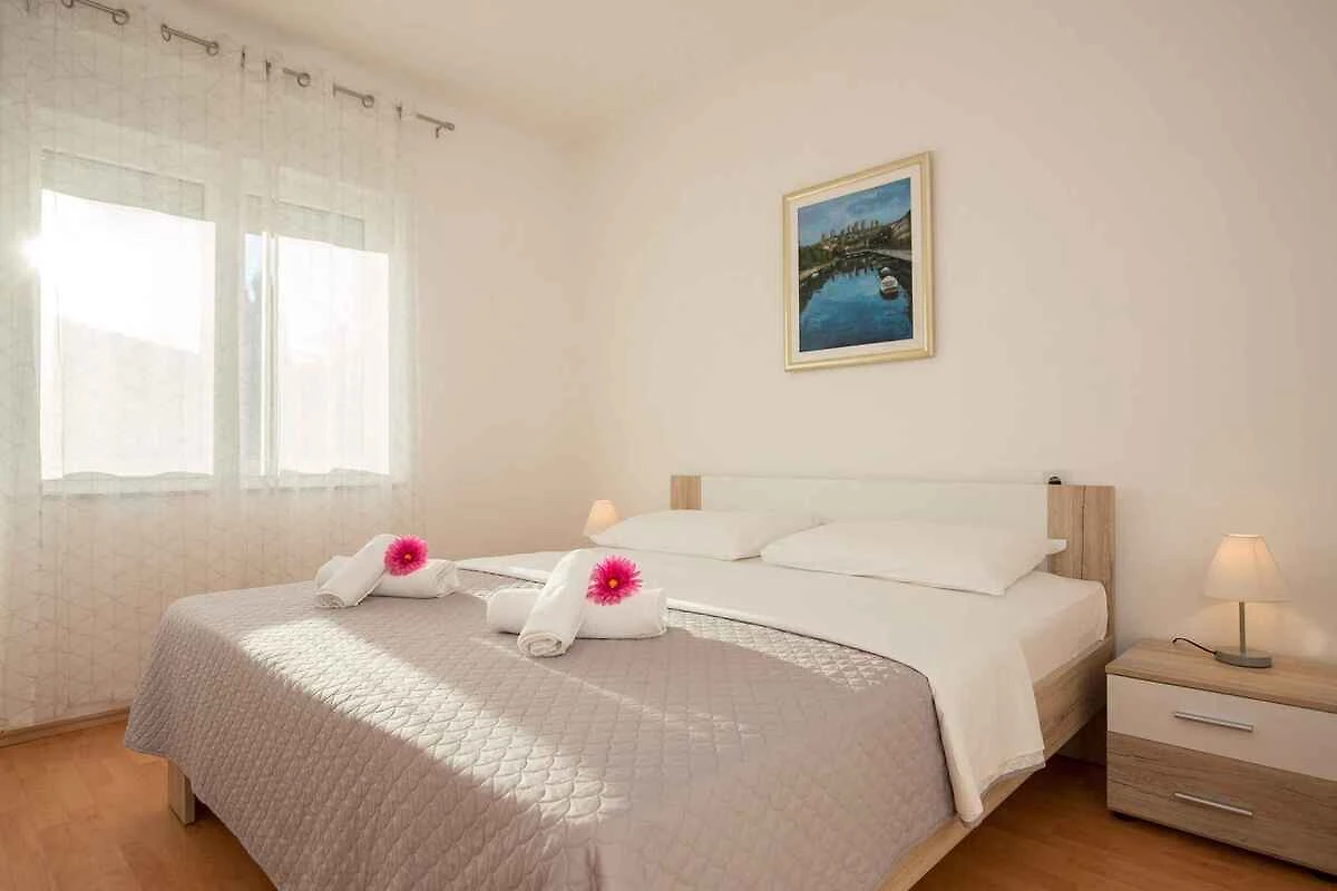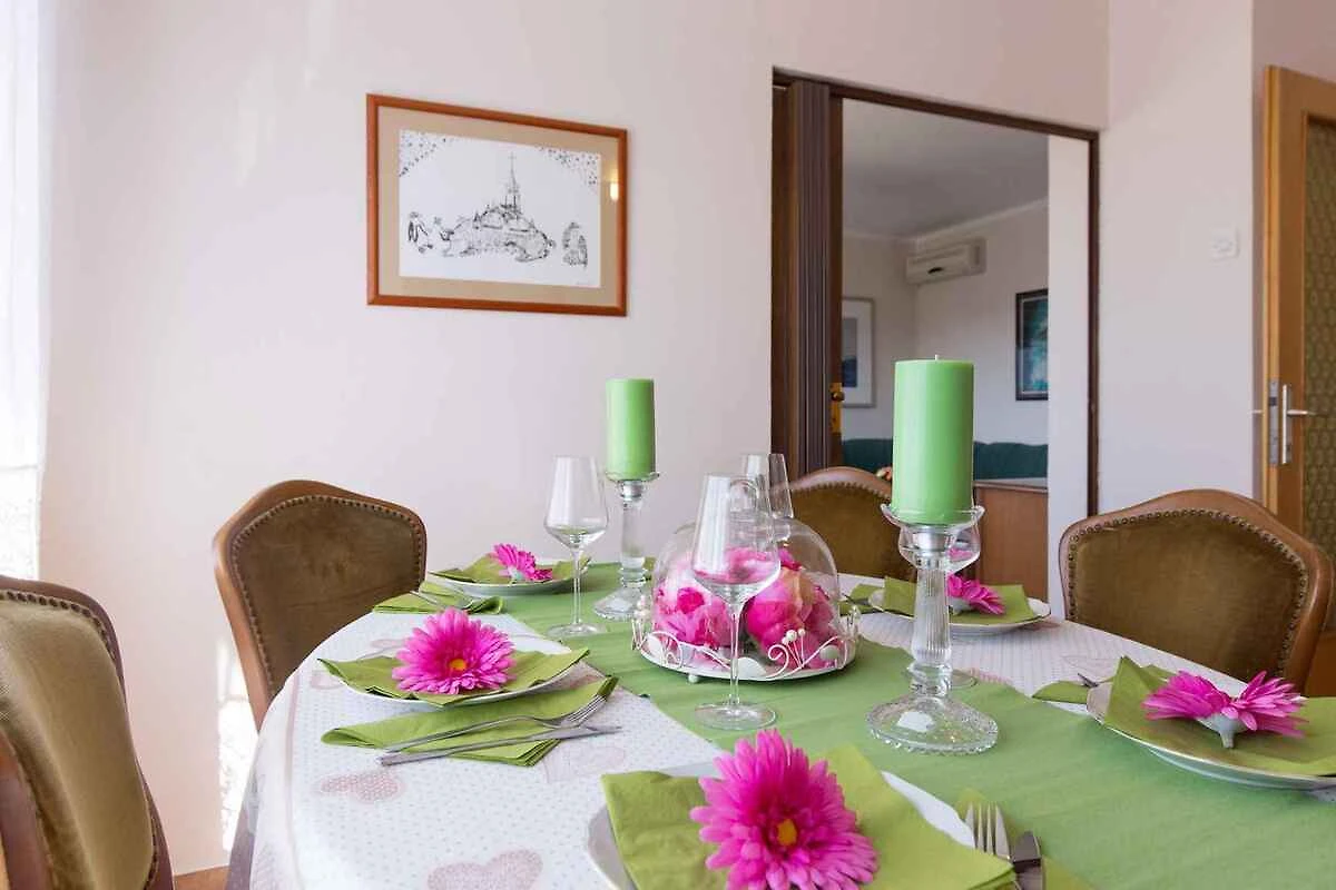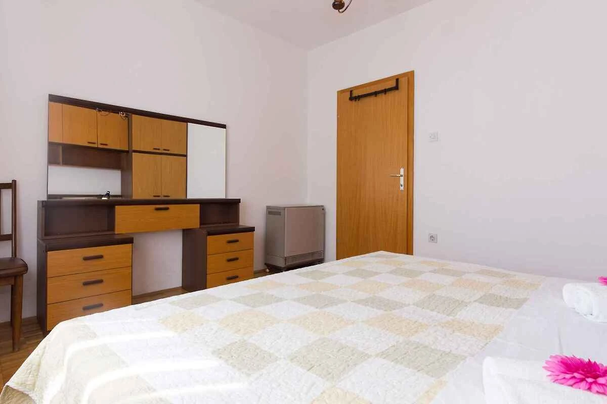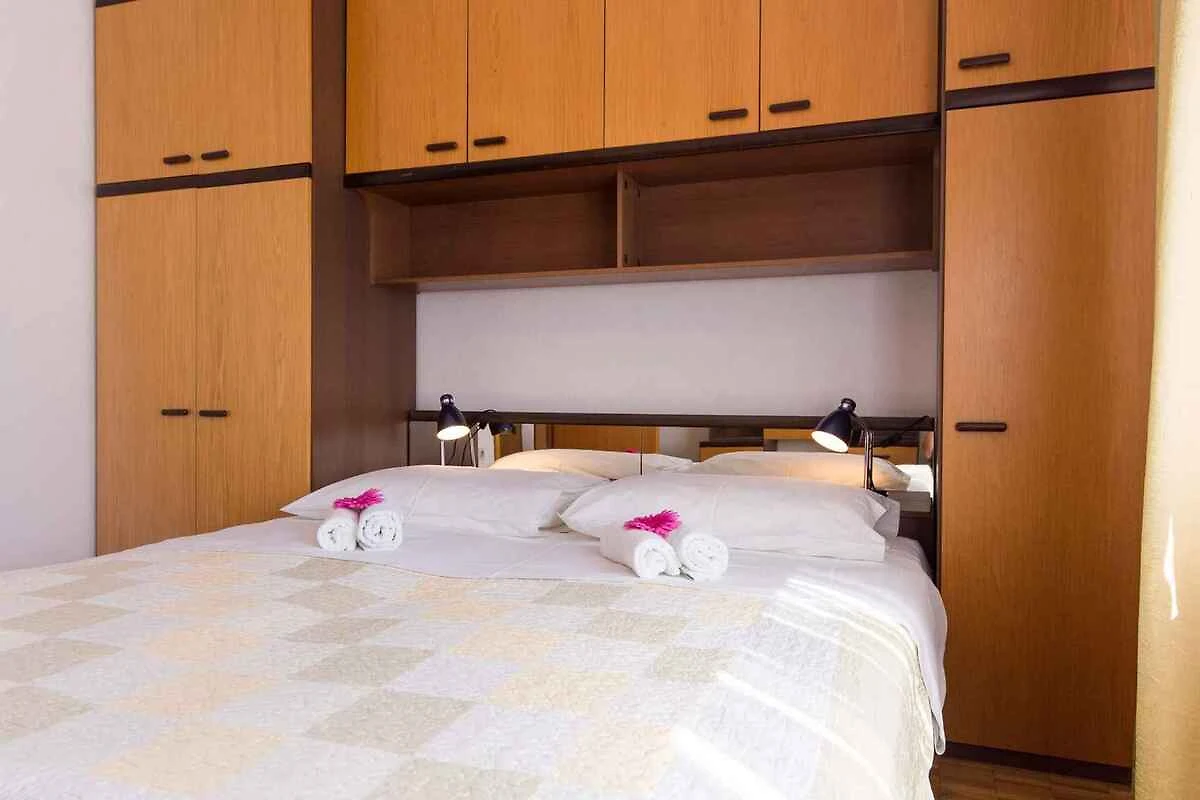 Krk. L' appartamento vacanze si trova in una trama del giardino chiuso con fiori e arbusti. Il padrone di casa vive in un altro edificio nella stessa proprietá. L'accesso avviene vicino a una strada secondaria (asfaltata). Parcheggio (per 2 auto) sulla proprietà.