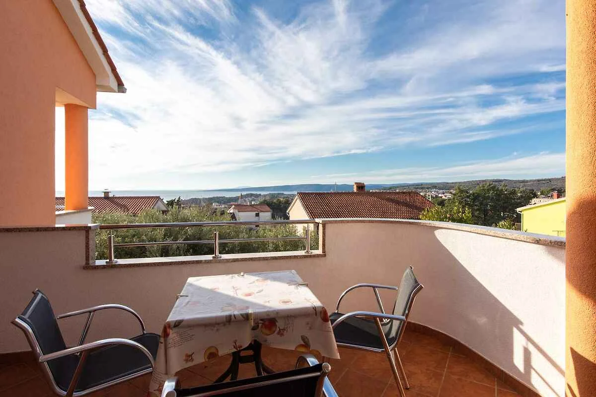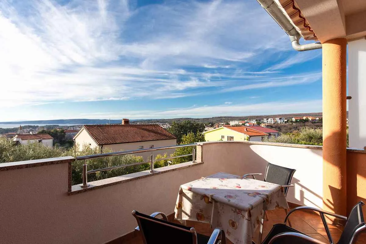 Krk. L' appartamento vacanze si trova in una trama del giardino aperta con arbusti. Il padrone di casa vive solo temporaneamente nella casa. L'accesso avviene vicino a una strada secondaria (asfaltata). Parcheggio (per 2 auto) sulla proprietà.