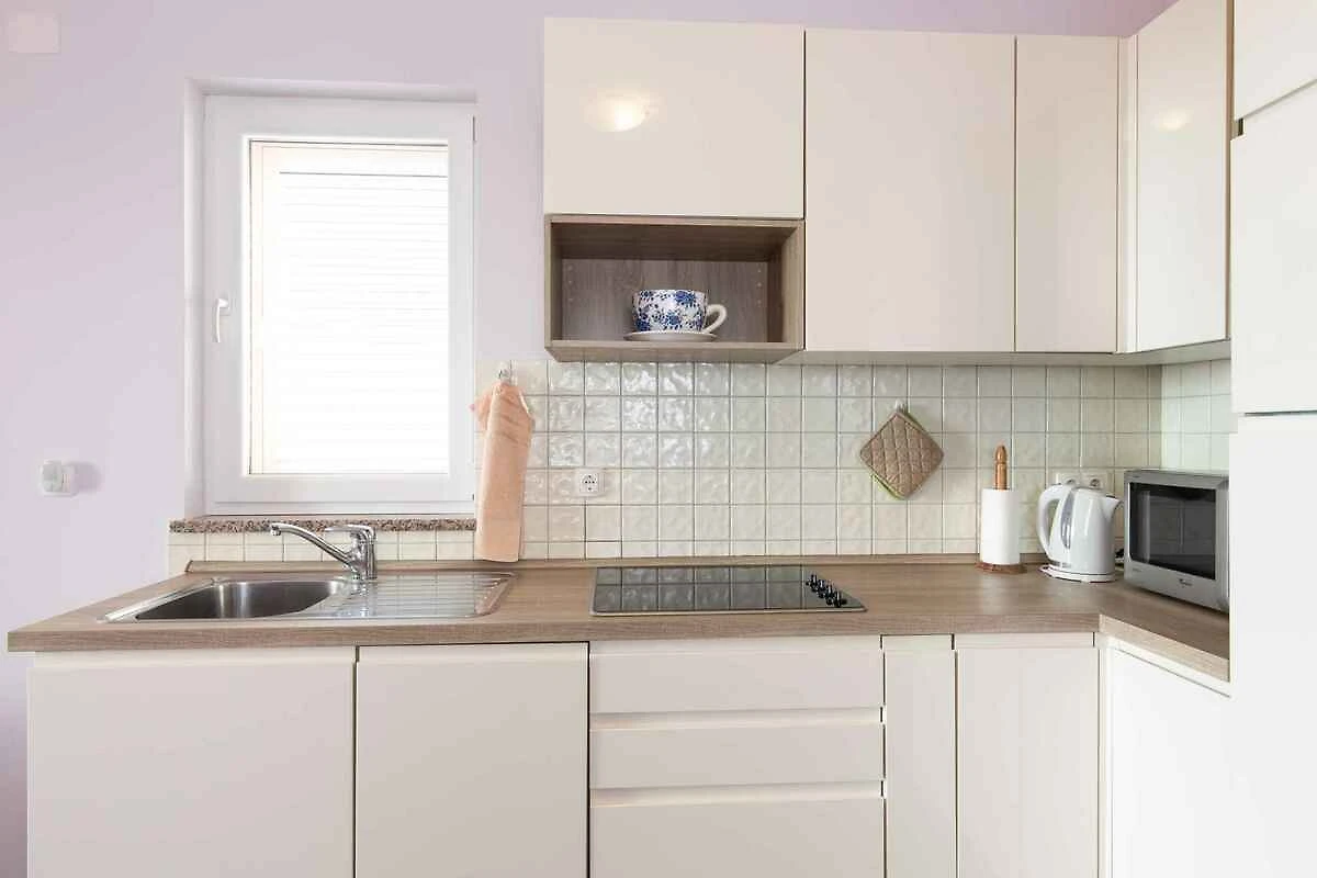 L' appartamento vacanze si trova in un appartamento casa ed è arredato moderno. La proprietà si trova in una zona residenziale, in periferia. Anche a causa tranquilla e soleggiata pendenza, il domicilio è popolare. Attrezzature: possibilità di grigliare.