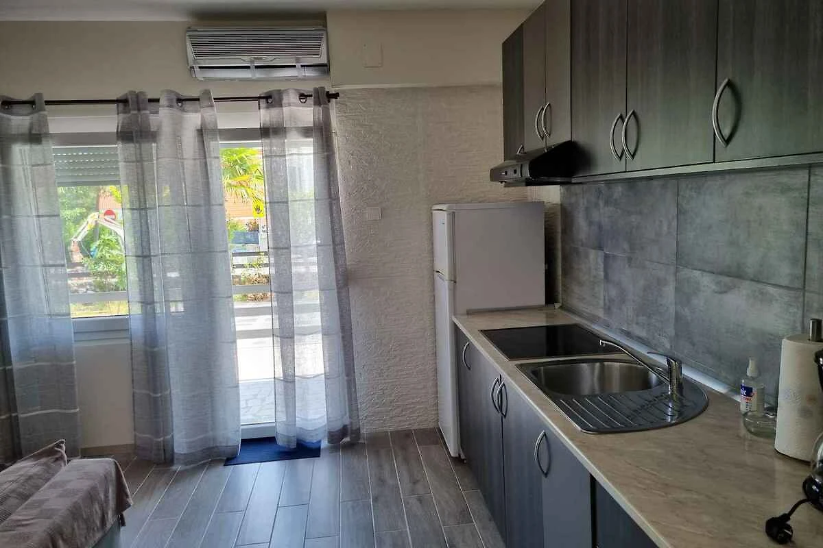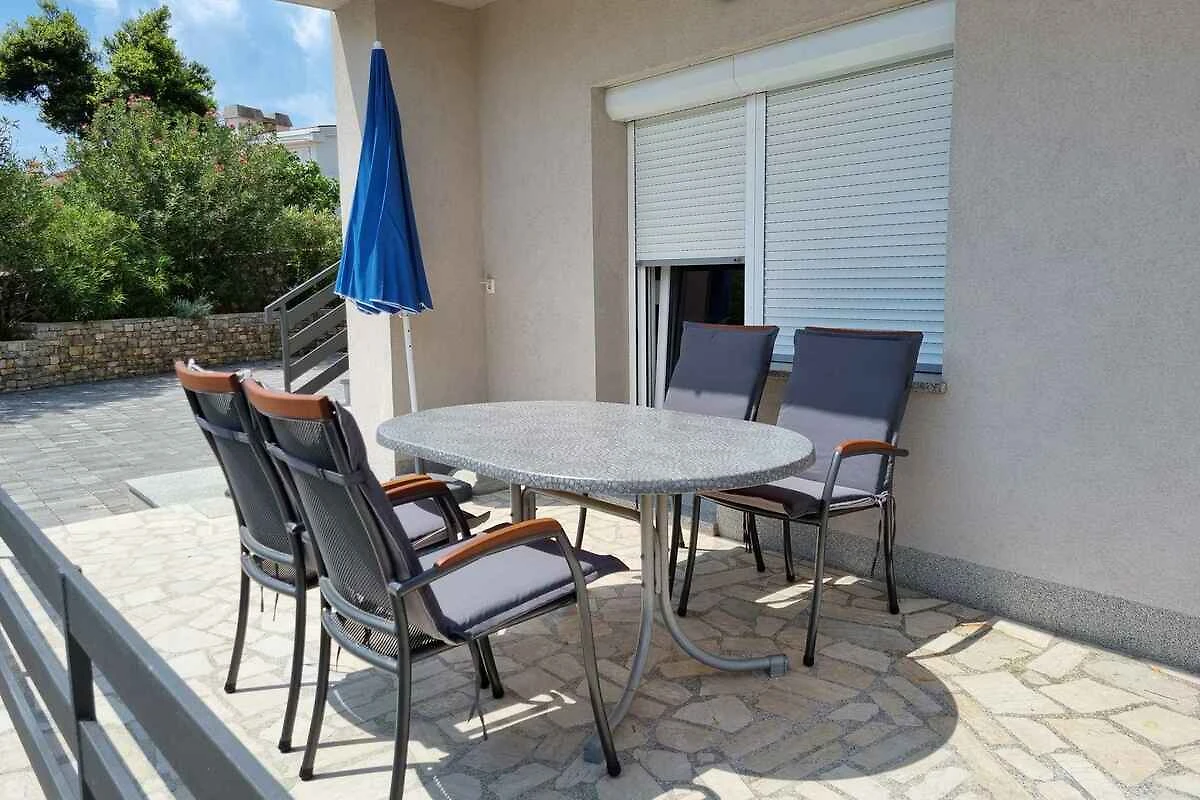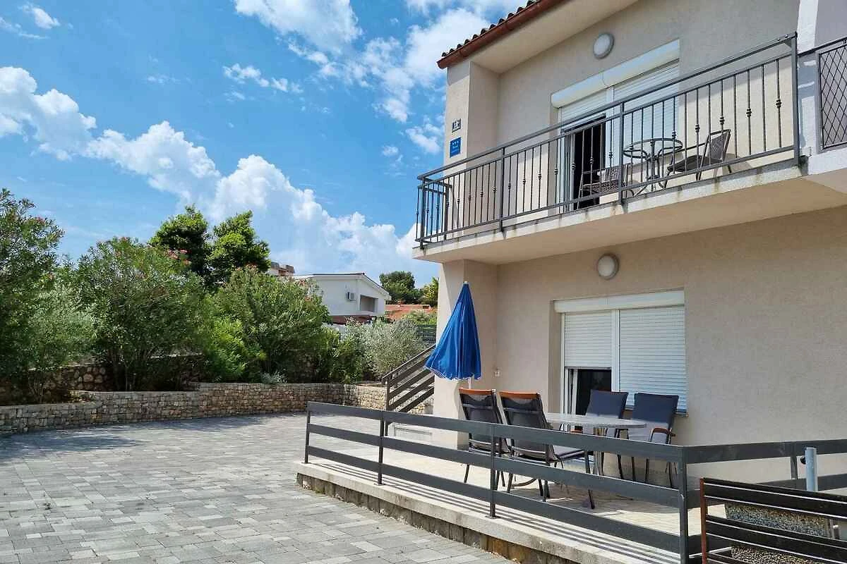 Krk. L' appartamento vacanze si trova in una trama del giardino chiuso, delimitata da una recinzione. Il padrone di casa vive stabilmente nella casa, ma usa un ingresso separato. Piano terra, vicino alla spiaggia di Ježevac e al centro della città di Krk L'accesso avviene vicino a una strada secondaria (asfaltata). Parcheggio sulla proprietà.