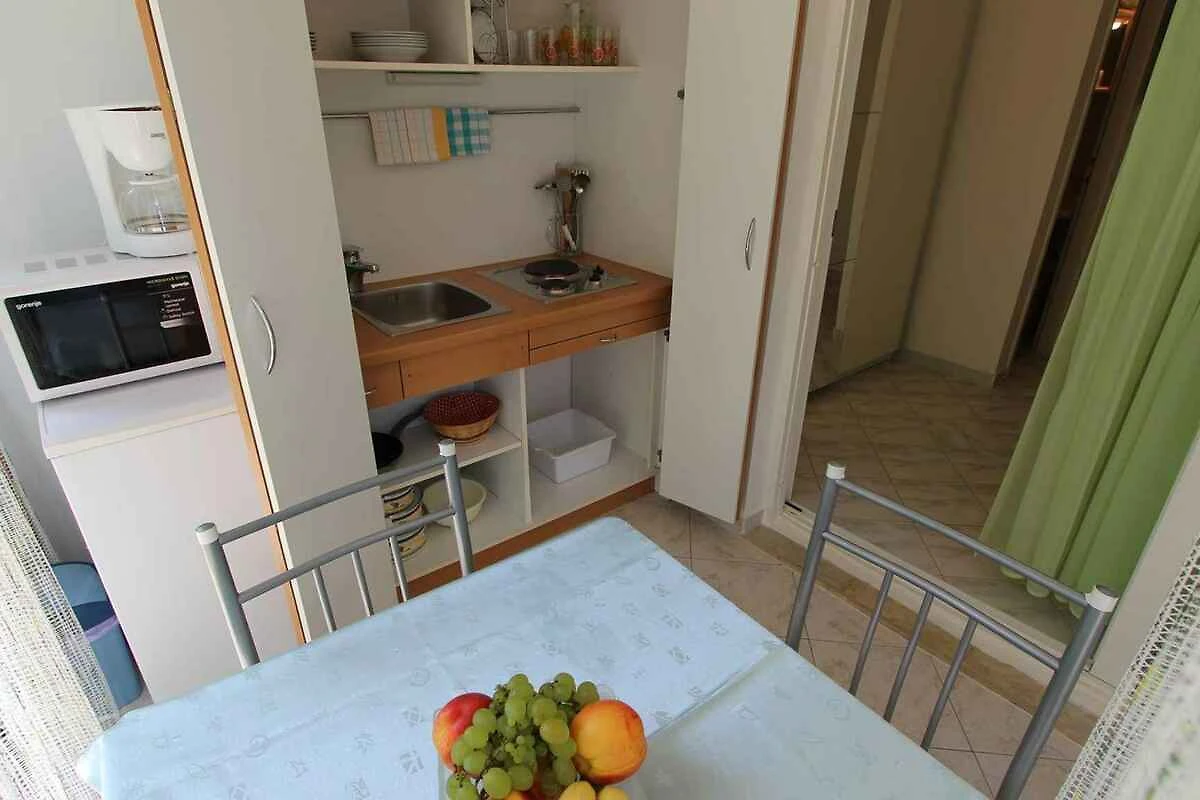 L'ingresso del vostro studio si trova im Erdgeschoss e é a livello del suolo. Soggiorno/camera da letto con 1 letto matrimoniale, TV e accesso alla terrazza. La cucinetta in soggiorno/camera da letto con zona pranzo, fornello elettrico (2 fornelli), frigorifero (scomparto del ghiaccio), microonde, caffettiera, tostapane e accesso alla terrazza. Bagno con doccia, WC e asciugacapelli.
