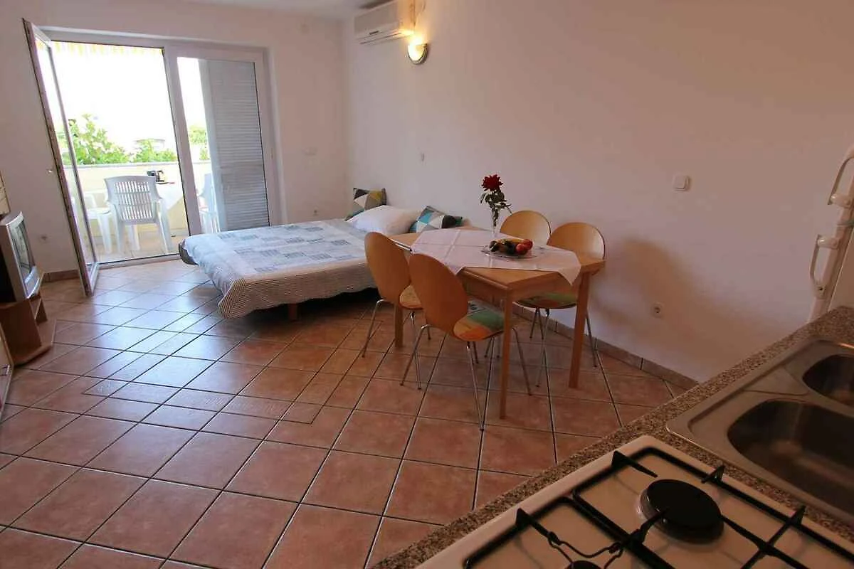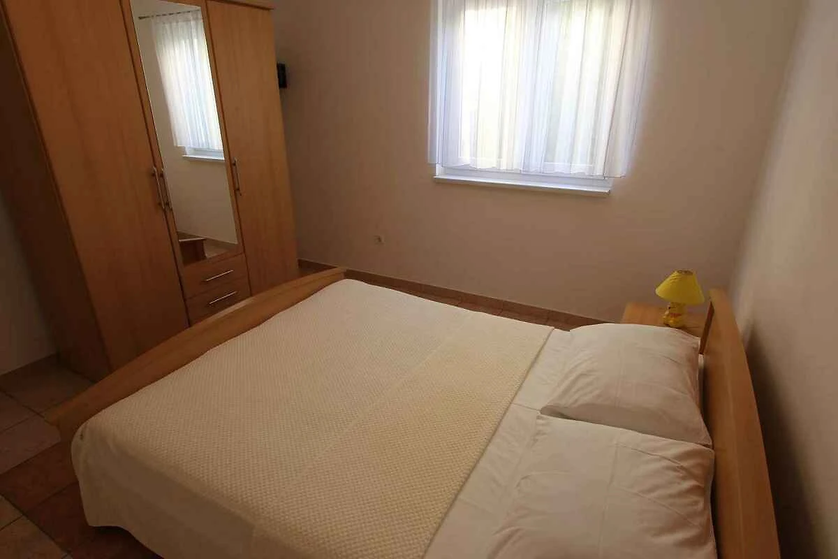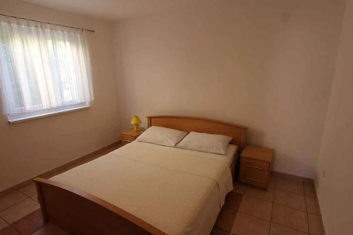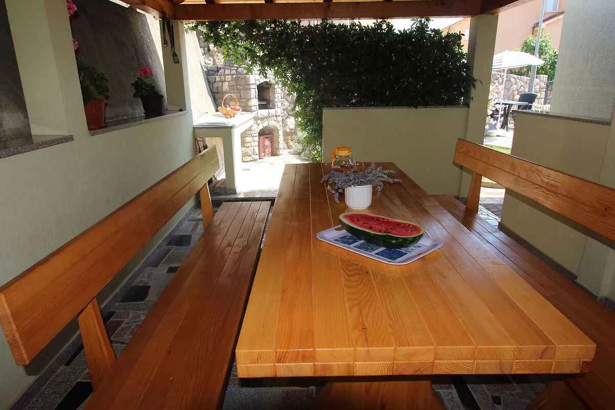 Malinska. L' appartamento vacanze si trova in una trama del giardino. Il padrone di casa vive solo temporaneamente nella casa. Parcheggio (per 1 auto) sulla proprietà.