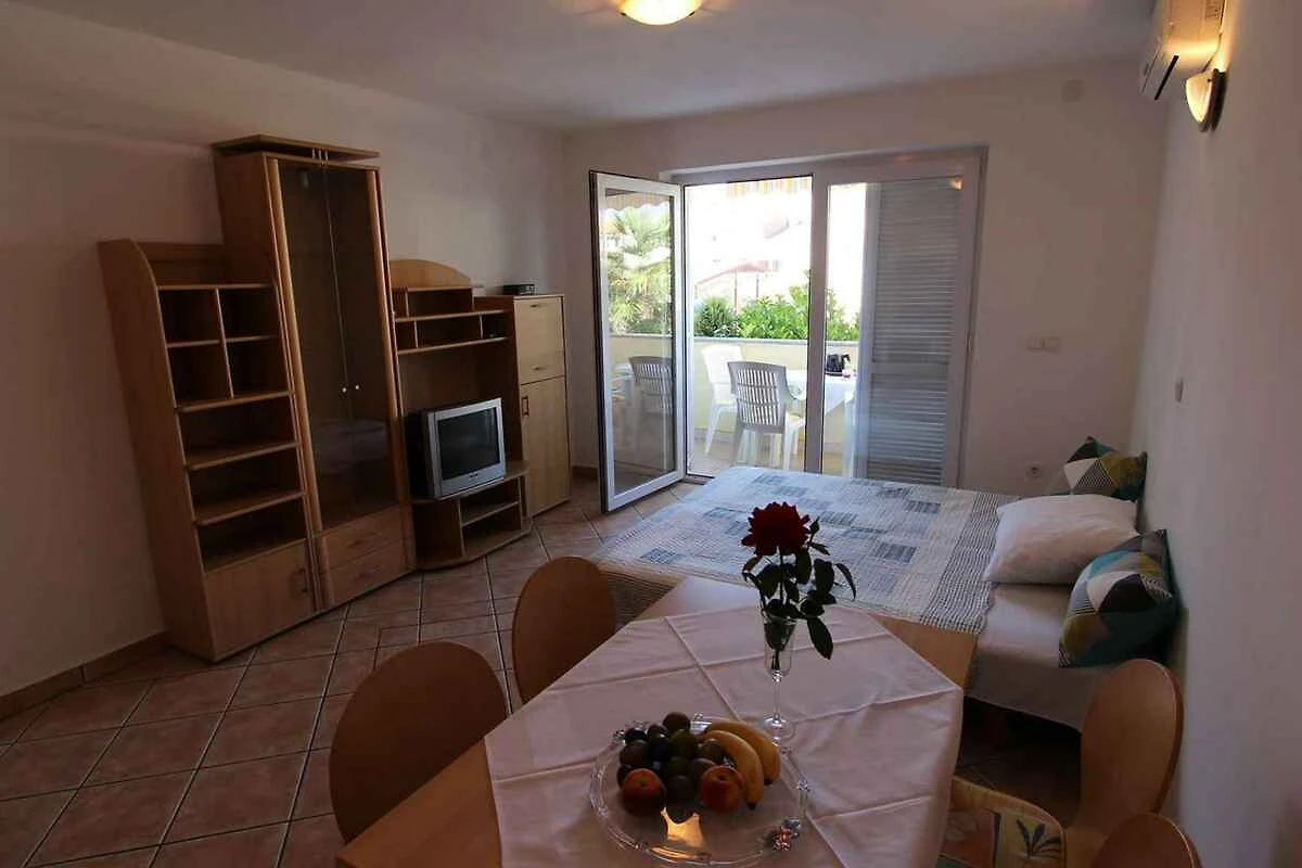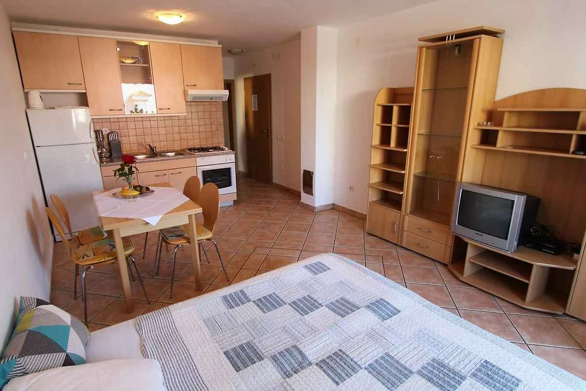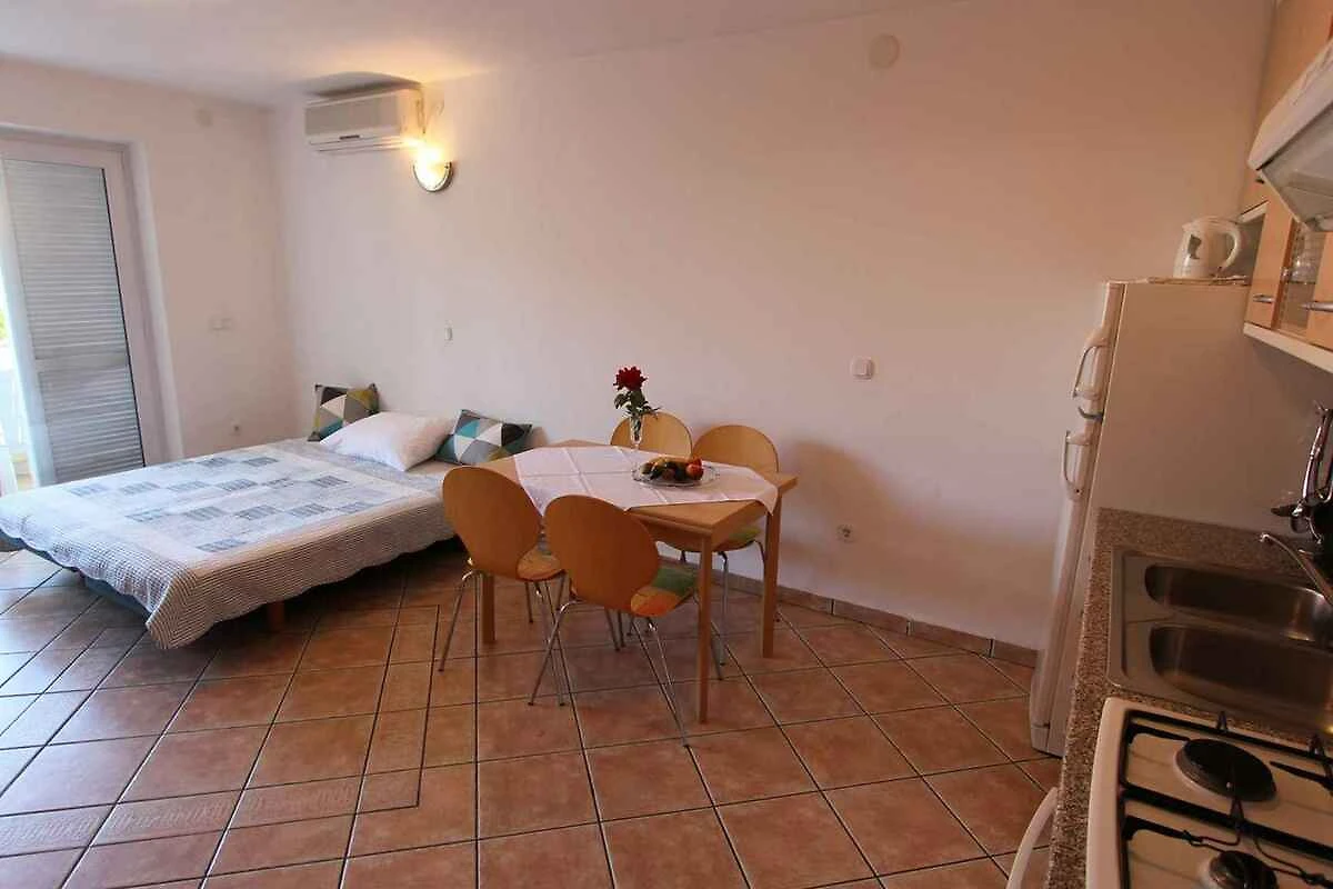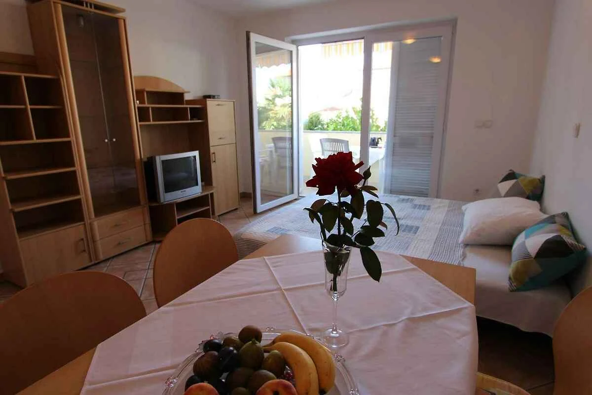 Malinska. L' appartamento vacanze si trova in una trama del giardino. Il padrone di casa vive solo temporaneamente nella casa. Parcheggio (per 1 auto) sulla proprietà.