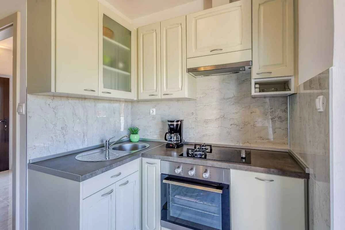 L' appartamento vacanze si trova in una casa unifamiliare, indipendente, è stato rinnovato nel 2005 ed è arredato funzionale. La proprietà si trova in una zona residenziale, in periferia. Anche a causa della vista dalla struttura sul panorama e soleggiata posizione, il domicilio è popolare. Attrezzature in comune: possibilità di grigliare, terrazza e mobili da giardino.