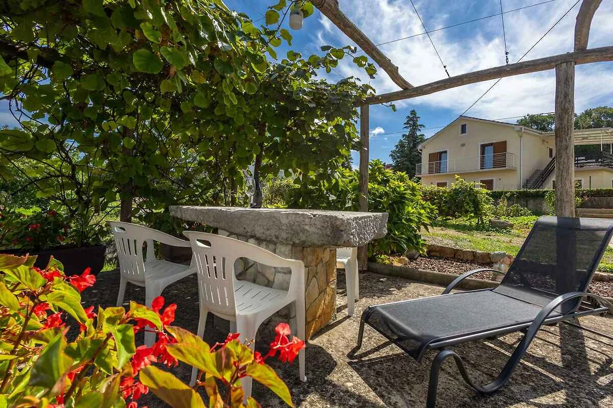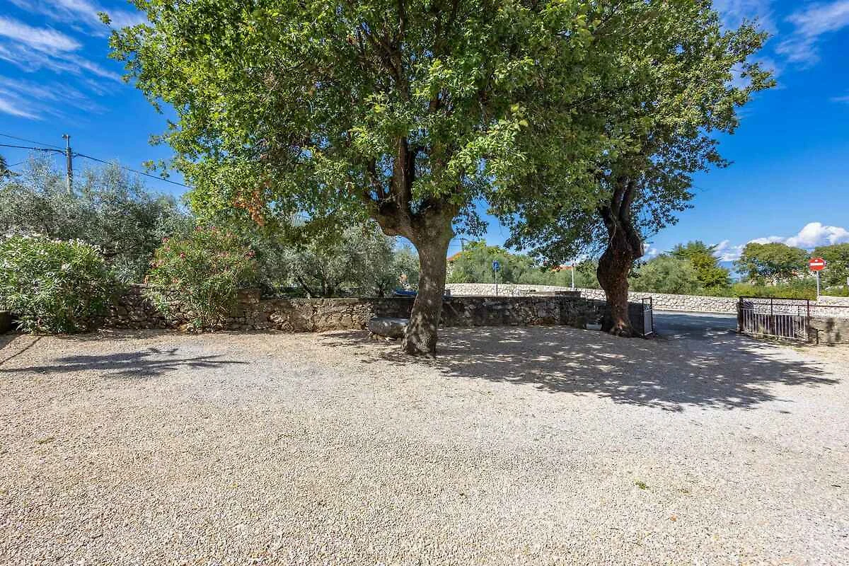 Malinska, frazione Bogovići. L' appartamento vacanze si trova in una trama del giardino chiuso, grande 600 mq con fiori e alberi. Il padrone di casa vive stabilmente nella casa, ma usa un ingresso separato. L'accesso avviene vicino a una strada secondaria (asfaltata). Parcheggio (per 2 auto) sulla proprietà.