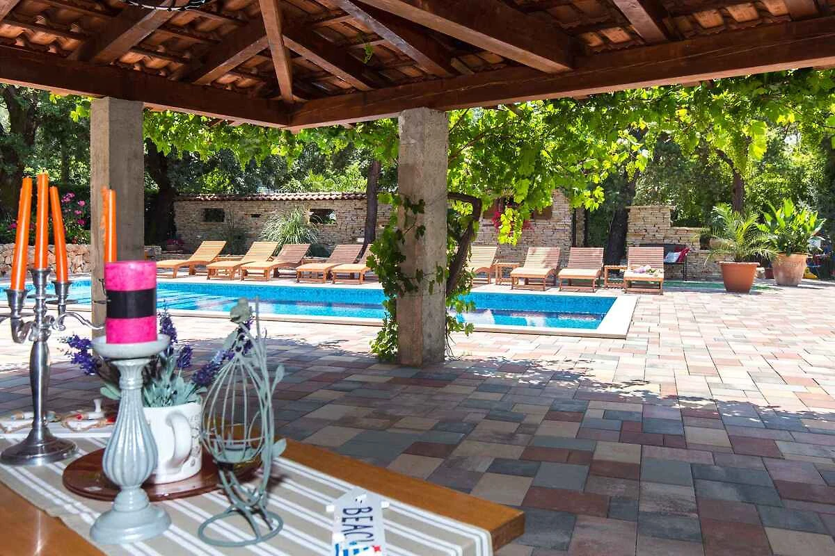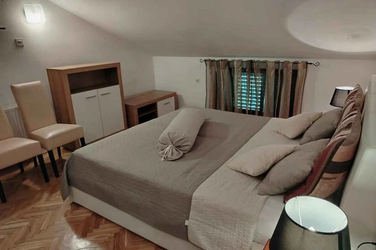 Malinska. L' appartamento vacanze si trova in una trama del giardino aperta, grande 1000 mq con fiori e alberi. Il padrone di casa vive stabilmente nella casa, ma usa un ingresso separato. L'accesso avviene vicino a una strada secondaria (asfaltata, di 10 m di lunghezza). Parcheggio (per 6 auto) sulla proprietà.