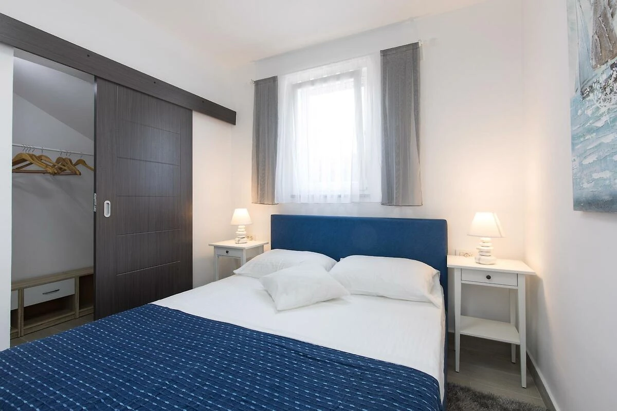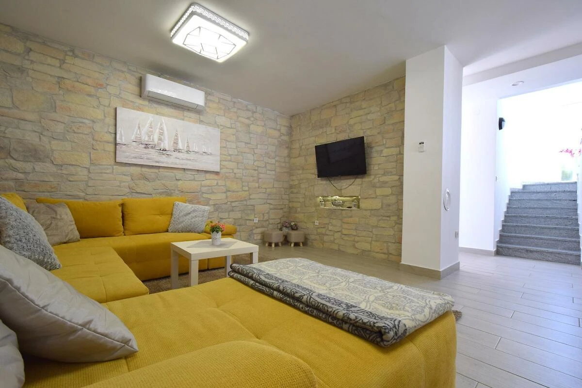 Vantačići. La casa vacanza si trova in una trama del giardino chiuso, grande 900 mq con fiori e alberi, delimitata da una recinzione e una siepe. Il proprietario non abita nella casa o nella proprietá. L'accesso avviene vicino a una strada secondaria (asfaltata). Parcheggio sulla proprietà.