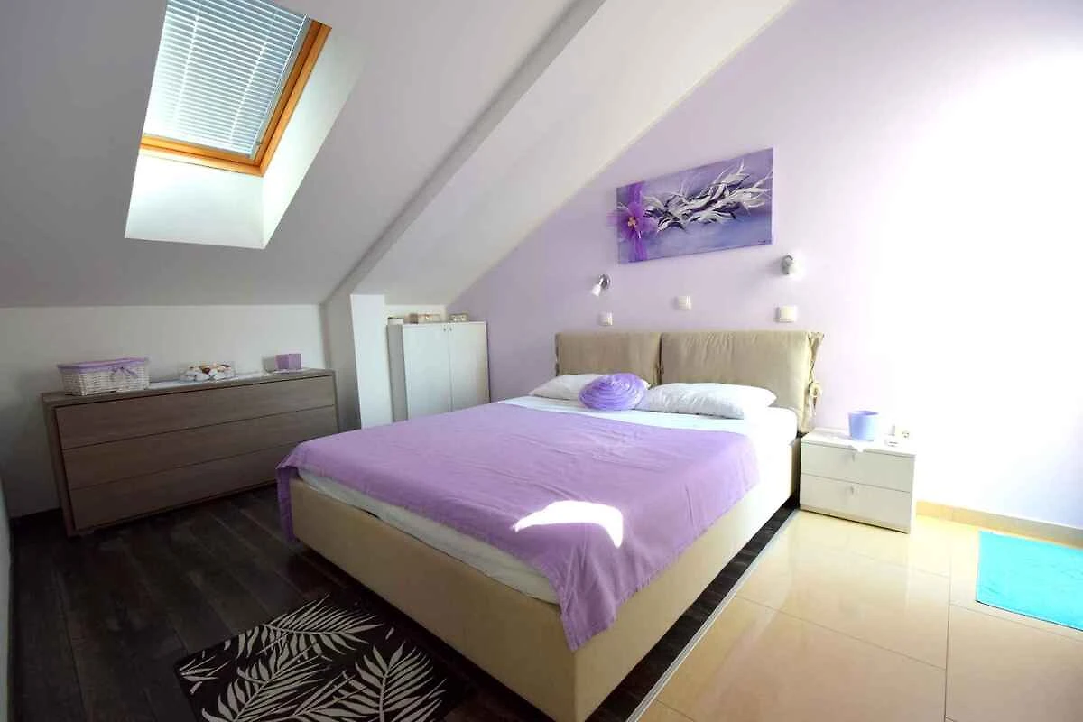 Njivice. L'appartamento per le vacanze si trova su un terreno aperto. Il locatore non abita nella casa o sulla proprietà. L'accesso avviene tramite una strada laterale (asfaltata, ghiaia o sterrato). Parcheggio (per 1 auto) sotto una tettoia e sulla proprietà.