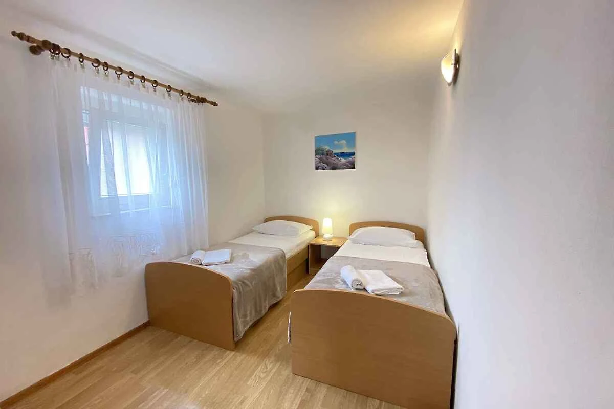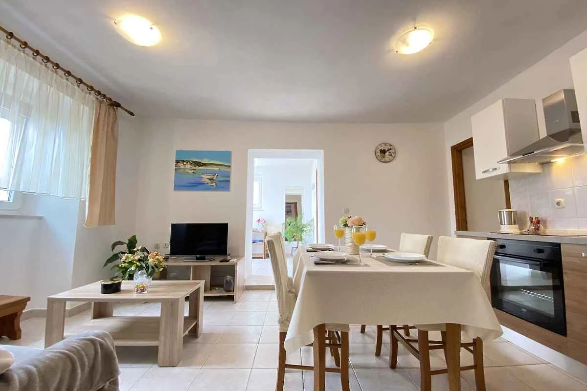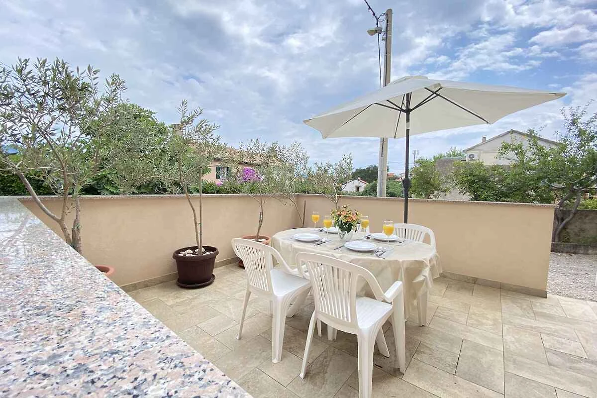 Šilo. L' appartamento vacanze si trova in una trama del giardino chiuso, grande 100 mq con fiori e arbusti, delimitata da un muro. Il padrone di casa vive stabilmente nella casa, ma usa un ingresso separato. La casa si trova a Šilo, 250 m dal mare. L'appartamento dispone di 2 camere da letto, un soggiorno con cucina e zona pranzo e una terrazza (10 m²). E' climatizzato. Internet è disponibile. Sono ammessi animali domestici. Un parcheggio è a disposizione degli ospiti. L'accesso avviene vicino a una strada secondaria (asfaltata, di 30 m di lunghezza). Parcheggio (per 1 auto) sulla proprietà.