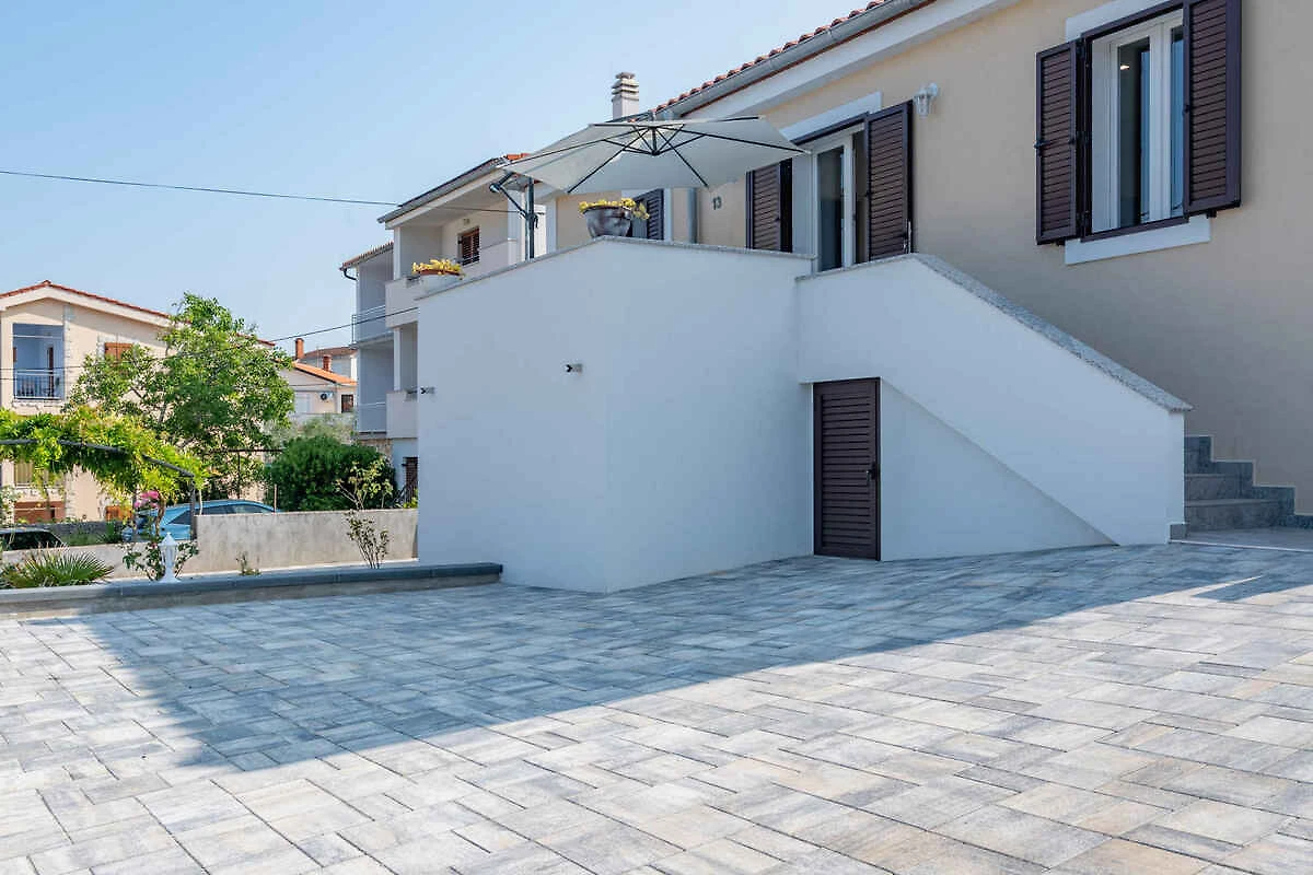Šilo. L' appartamento vacanze si trova in una trama del giardino aperta, grande 50 mq con fiori, arbusti e alberi. Il padrone di casa vive stabilmente nella casa, ma usa un ingresso separato. Posizione tranquilla e verde L'accesso avviene vicino a una strada secondaria (asfaltata). Parcheggio (per 2 auto) sulla proprietà.