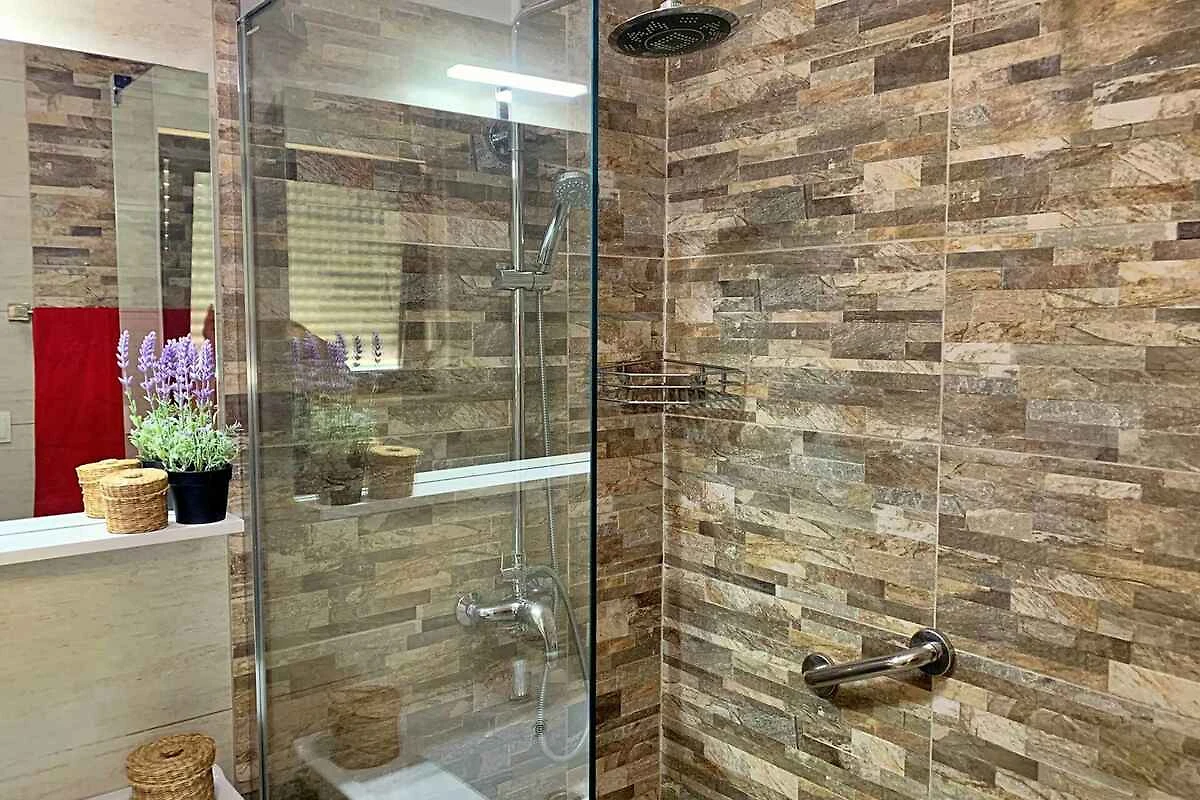 L'ingresso del vostro appartamento si trova al 2. piano. Soggiorno con 2 letti aggiuntivi su divano/sofa, angolo di seduta, TV e accesso al balcone (20 mq). 2 camere da letto tutto a con 1 letto matrimoniale. Cucina con zona pranzo, fornello elettrico, forno, lavastoviglie, frigorifero (scomparto del ghiaccio), microonde, caffettiera e bollitore elettrico. Bagno con doccia, 1 lavandino, WC e asciugacapelli. WC separato con 1 lavandino e WC.