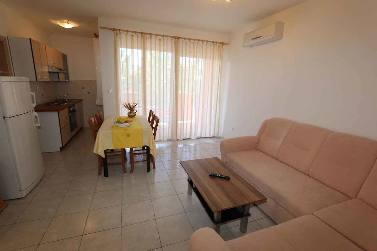 Šilo. L' appartamento vacanze si trova in una trama del giardino aperta con arbusti e alberi. Il padrone di casa vive stabilmente nella casa, ma usa un ingresso separato. La casa si trova a Šilo, 700 m dal mare. È circondato dalla natura e offre una vacanza tranquilla. L'appartamento ha 2 camere da letto, un soggiorno, una cucina con sala da pranzo e un balcone (10 m²). L'aria condizionata è inclusa nel prezzo. La casa dispone di un ampio parcheggio. Sono ammessi animali domestici. L'accesso avviene vicino a una strada secondaria (asfaltata, di 150 m di lunghezza). Parcheggio (per 4 auto) sulla proprietà.