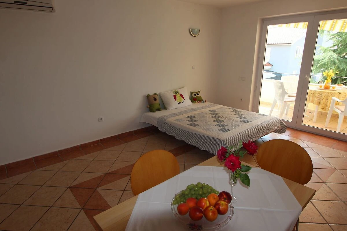 Malinska. L' appartamento vacanze si trova in una trama del giardino. Il padrone di casa vive solo temporaneamente nella casa. I bungalow KVA KRK 468 (2 persone) e KVA KRK 469 (4 persone) si trovano nello stesso edificio. Il bungalow KVA KRK 472 (4 persone) si trova nella stessa proprietà. L'accesso avviene vicino a una strada secondaria. Parcheggio (per 1 auto) sulla proprietà.