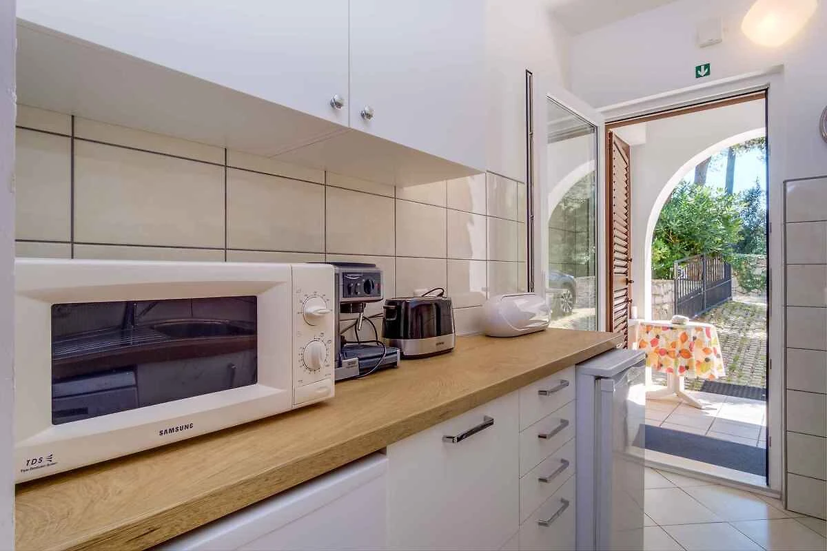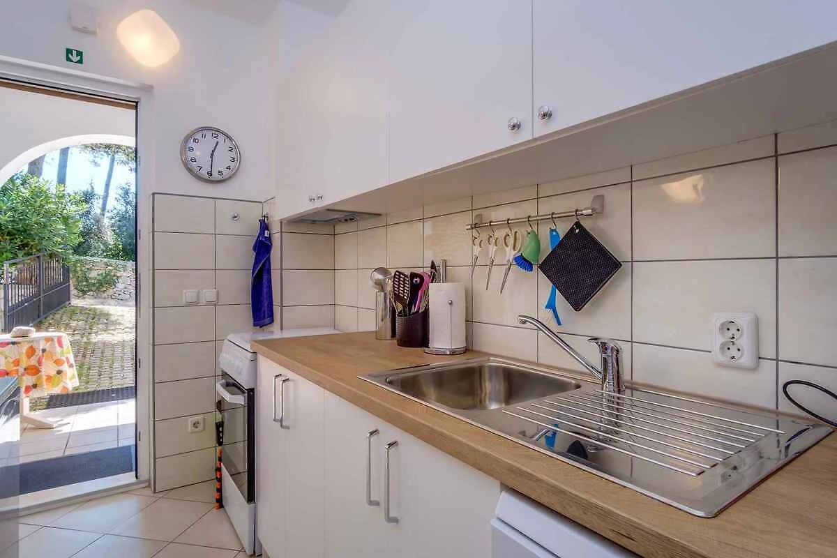 Mali Lošinj. L'appartamento per le vacanze si trova su un terreno con giardino. Il locatore abita nella casa, ma utilizza un ingresso separato. Parcheggio sulla strada davanti alla casa.
