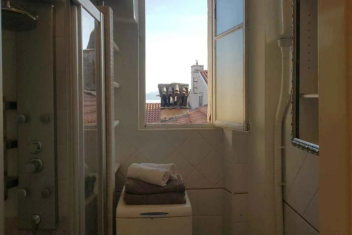 Lovran. L'appartamento per le vacanze si trova su un terreno aperto di 200 mq. Il locatore non abita nella casa o sulla proprietà. L'accesso avviene tramite una strada (asfaltata). Parcheggio in un parcheggio in paese. Parcheggi pubblici gratuiti.