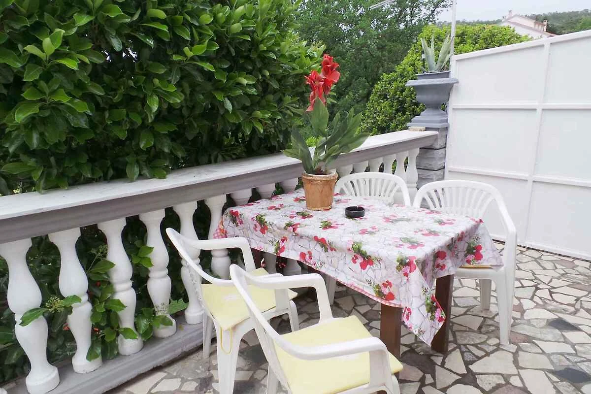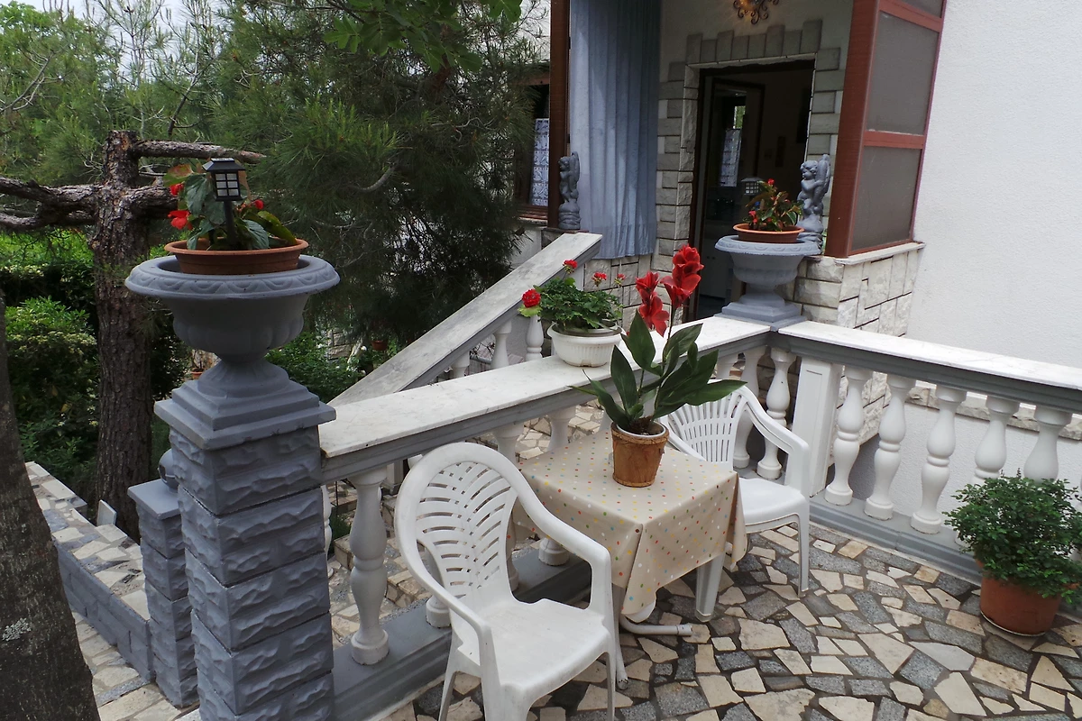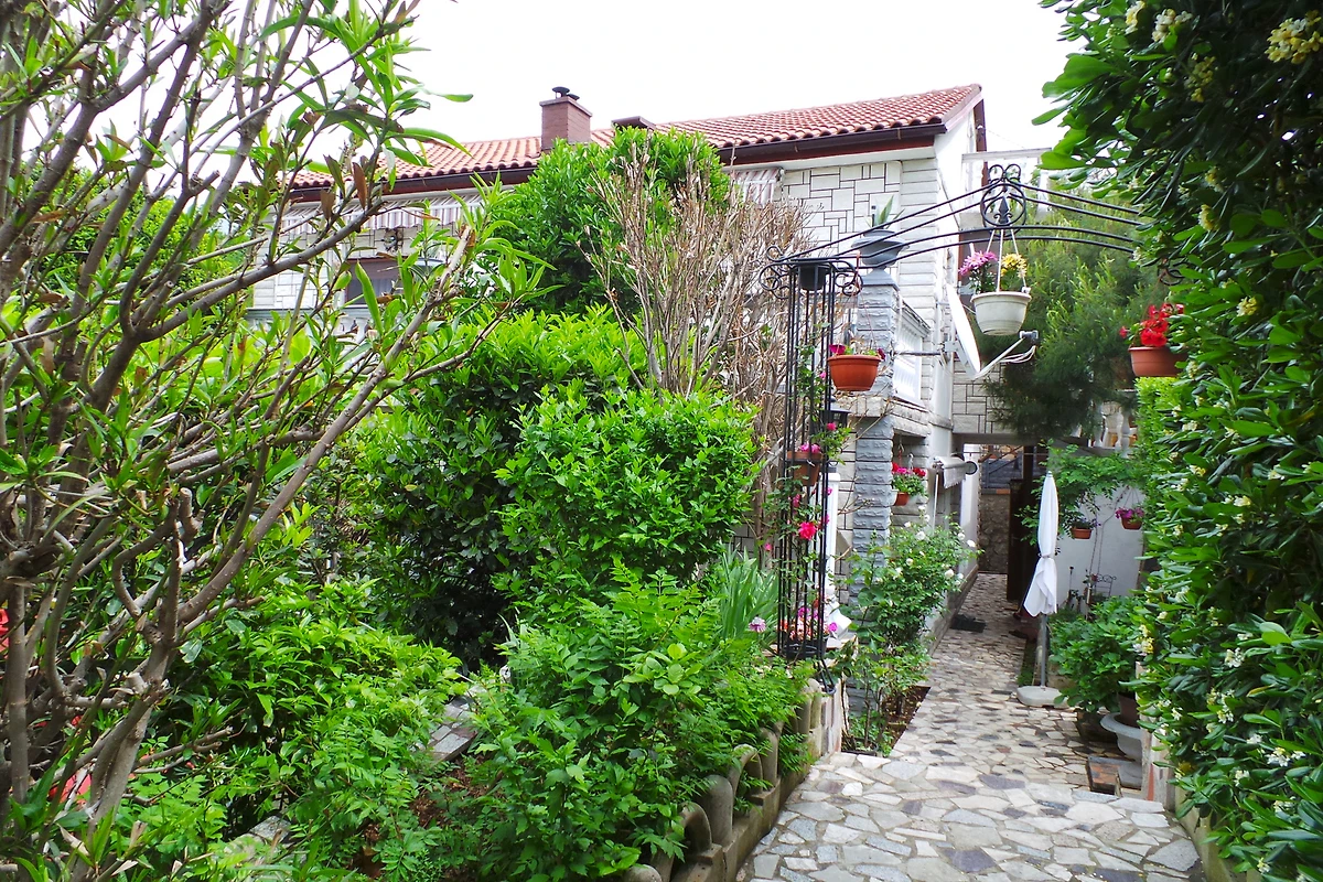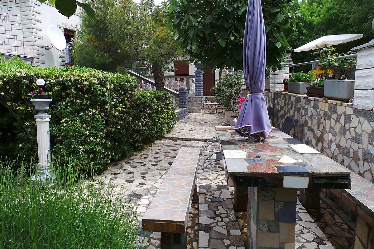 Jablanac. L'appartamento si trova su un terreno giardino chiuso di 1000 mq, delimitato da una recinzione. Il locatore abita costantemente nella casa, ma utilizza un ingresso separato. L'accesso avviene tramite una strada secondaria. Parcheggio (per 5 auto) sul terreno.