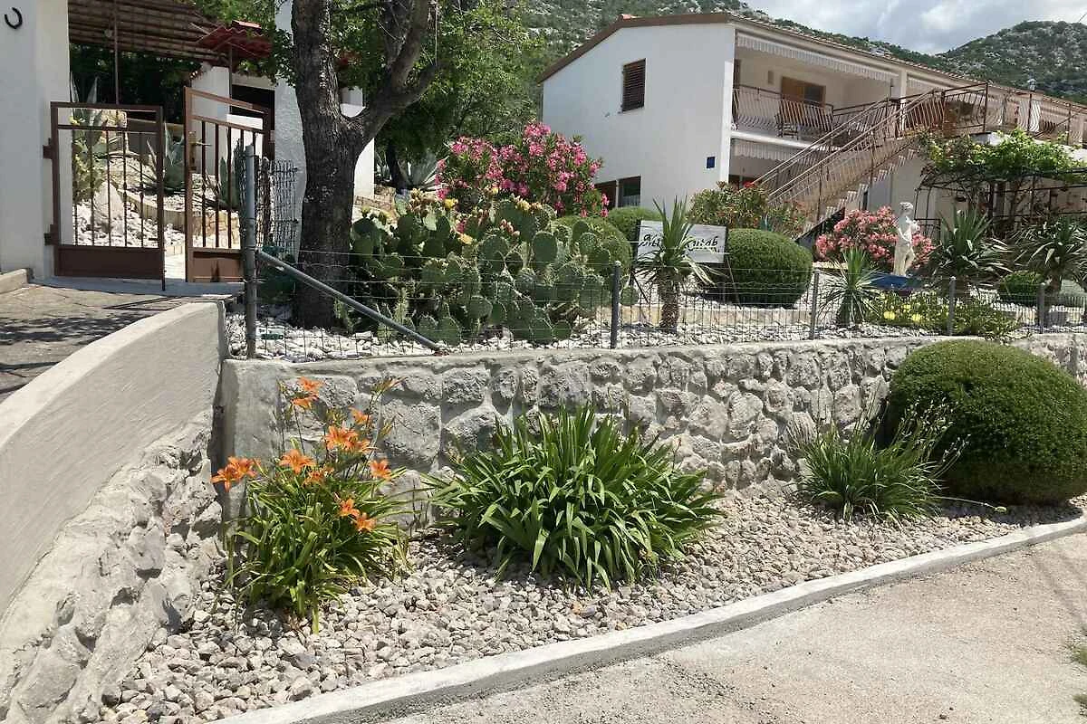Sveti Juraj, frazione Smokvica. Il monolocale si trova su un terreno di giardino recintato con prato, fiori e alberi, delimitato da una recinzione. Il locatore abita stabilmente nella casa, ma utilizza un ingresso separato. Appartamenti per vacanze KVA VEL 294, KVA VEL 295 (4 persone), KVA VEL 294, KVA VEL 295 e KVA VEL 296 ciascuno per 2 persone si trovano nella stessa casa. L’accesso avviene tramite una strada secondaria (asfaltata). Parcheggio (per 1 auto) sulla proprietà.