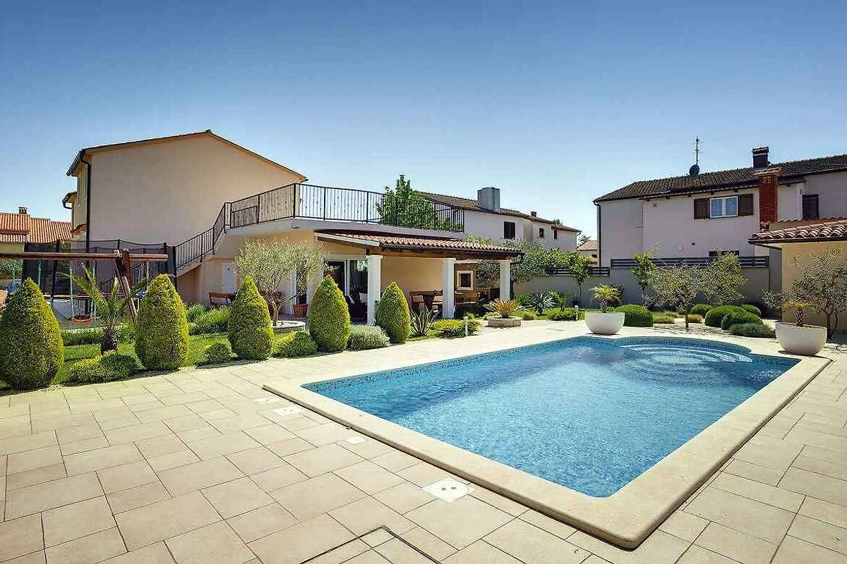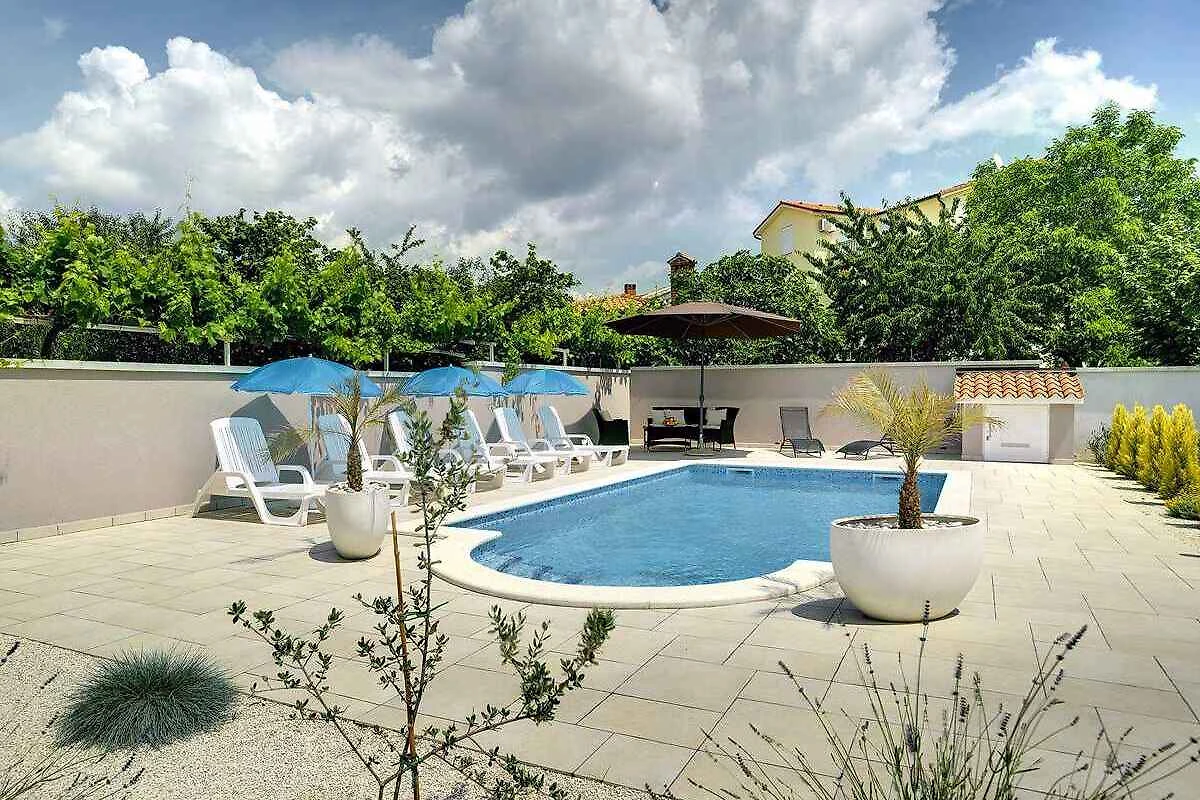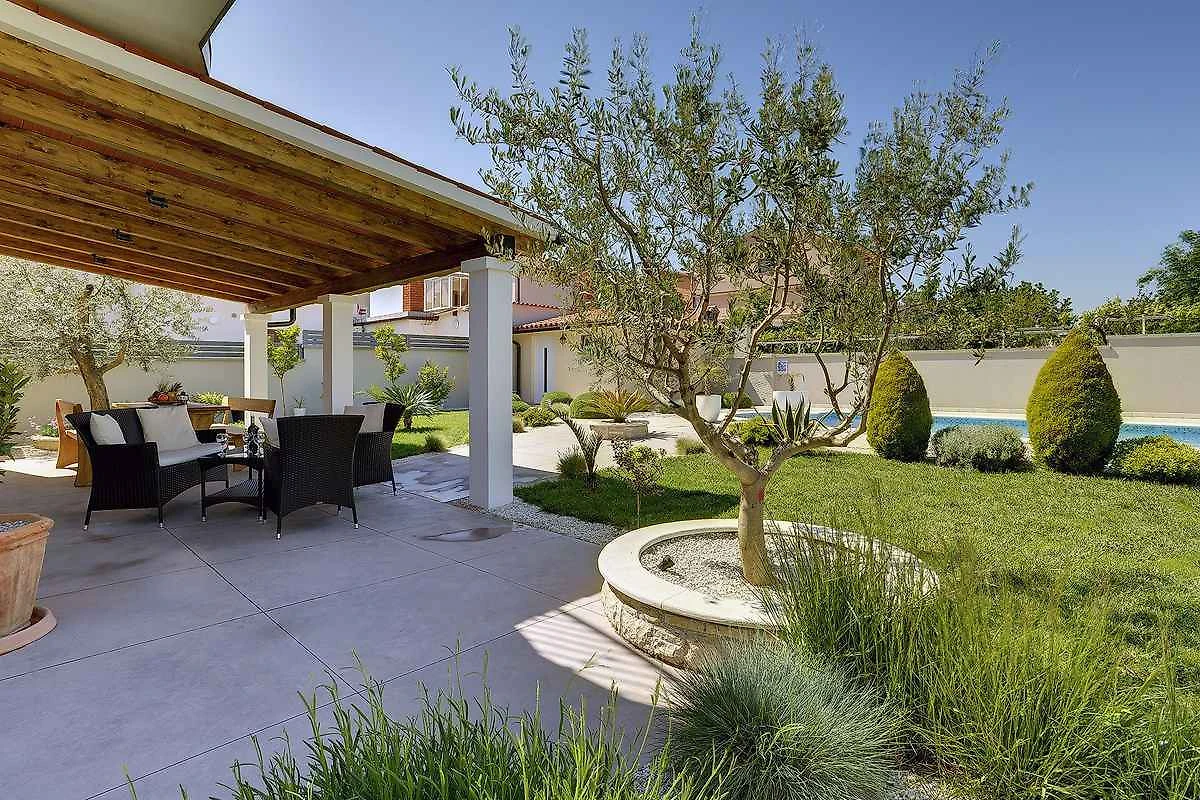 Medulin. La villa si trova in una trama del giardino chiuso, grande 1000 mq. Parcheggio (per 4 auto) sulla proprietà.