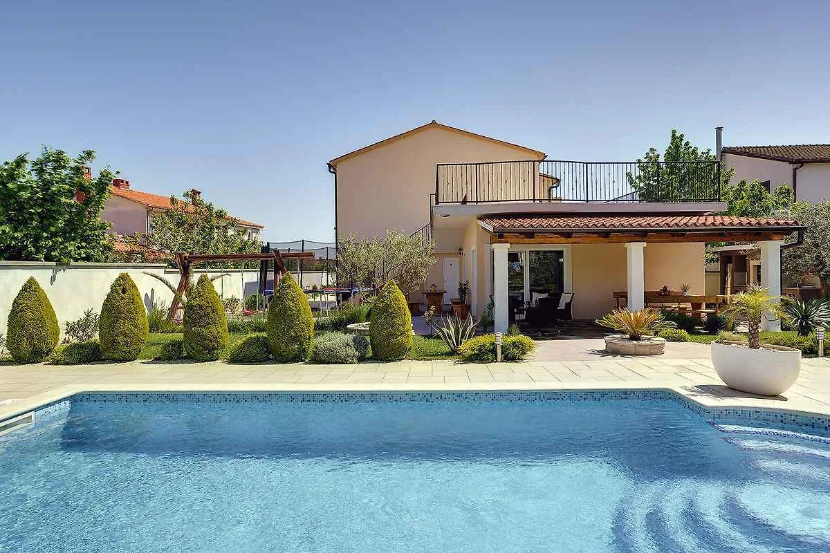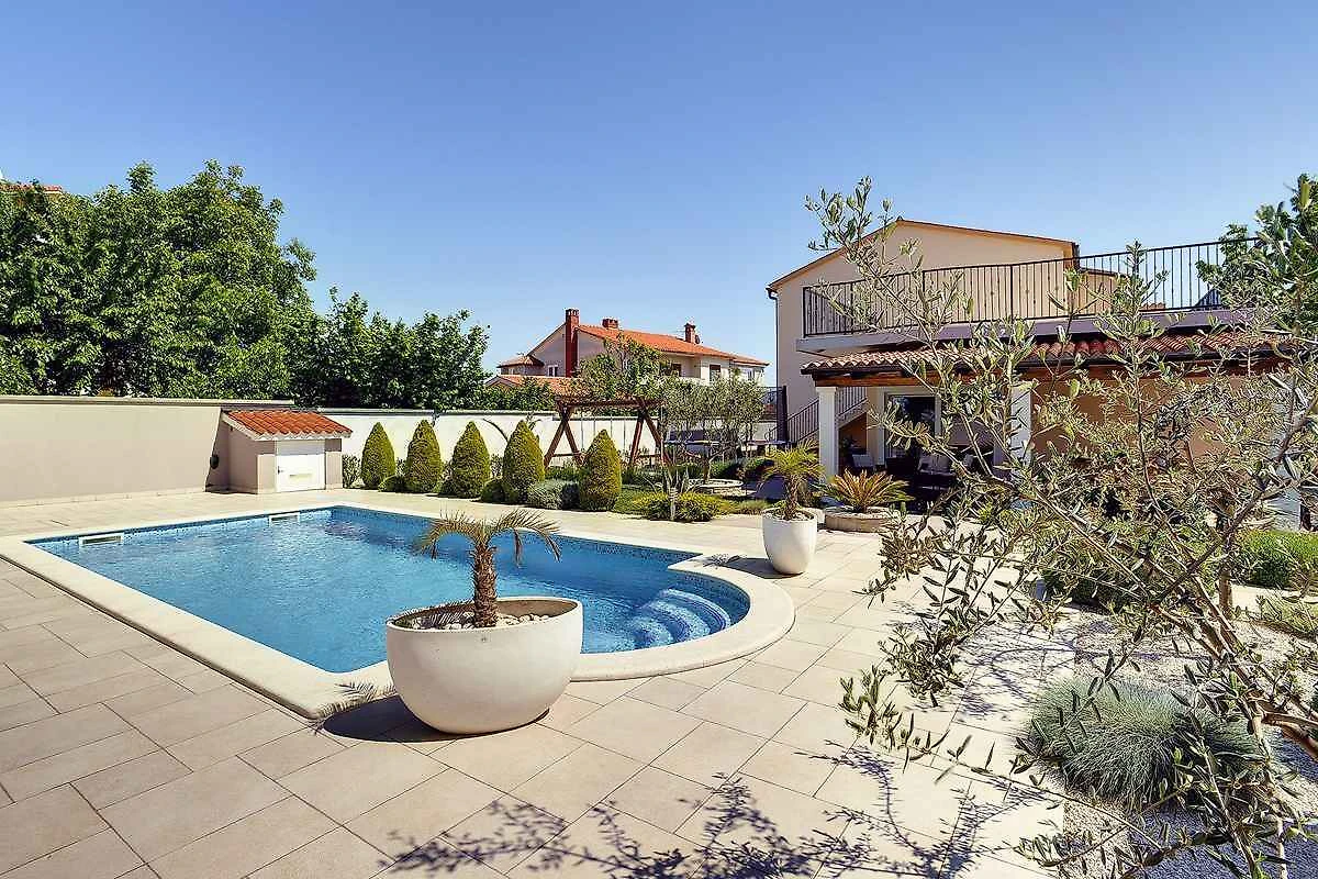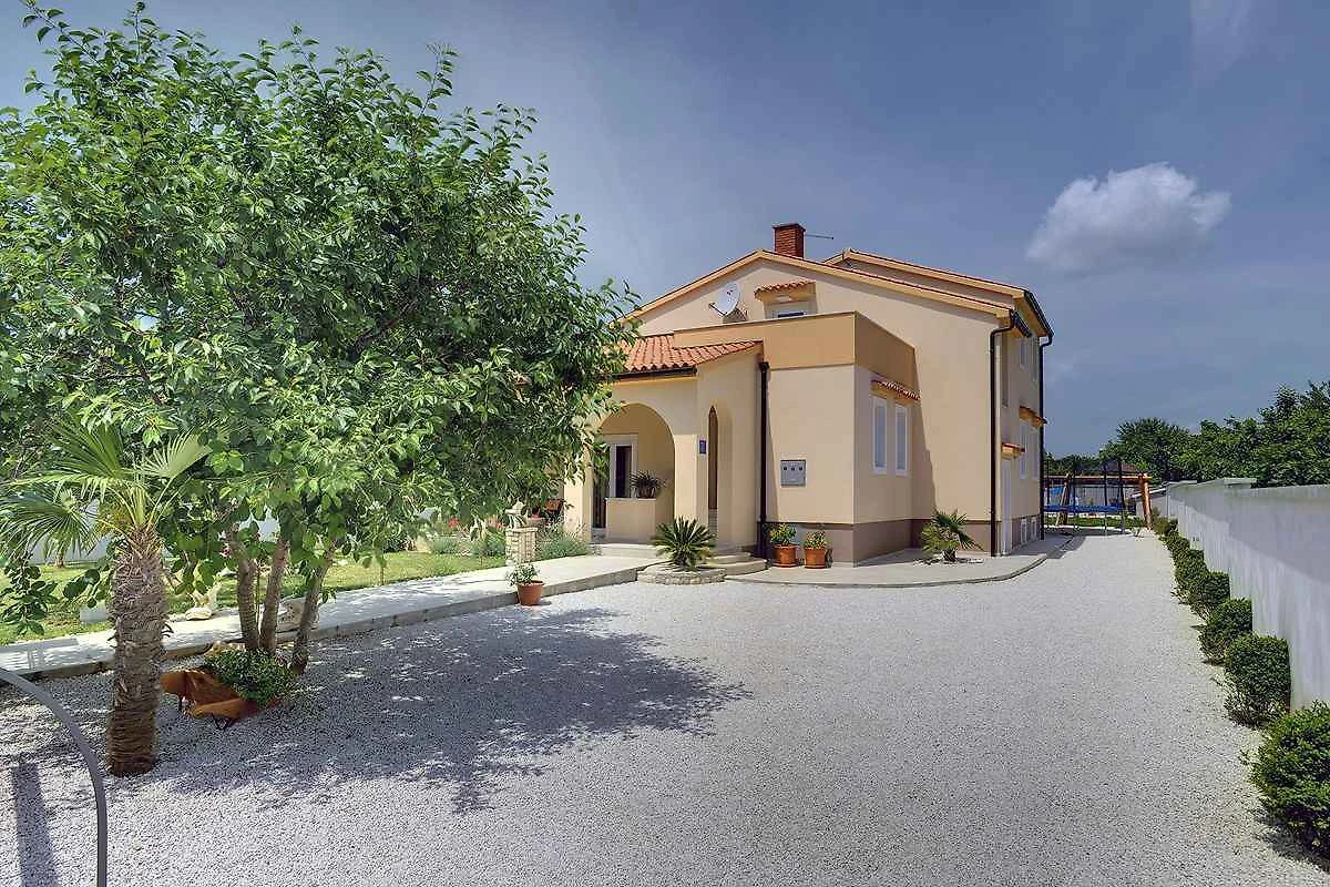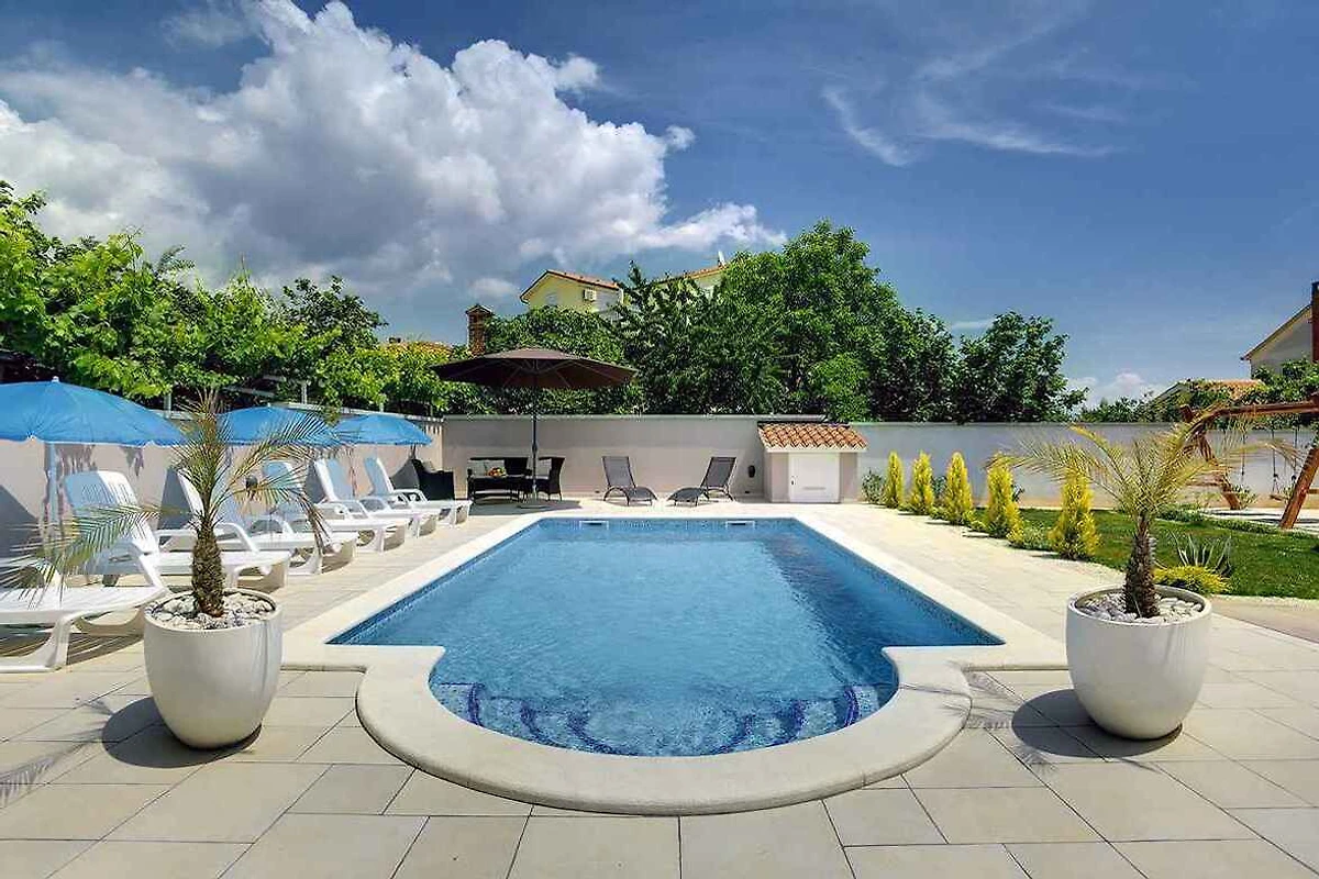 Medulin. La villa si trova in una trama del giardino chiuso, grande 1000 mq. Parcheggio (per 4 auto) sulla proprietà.