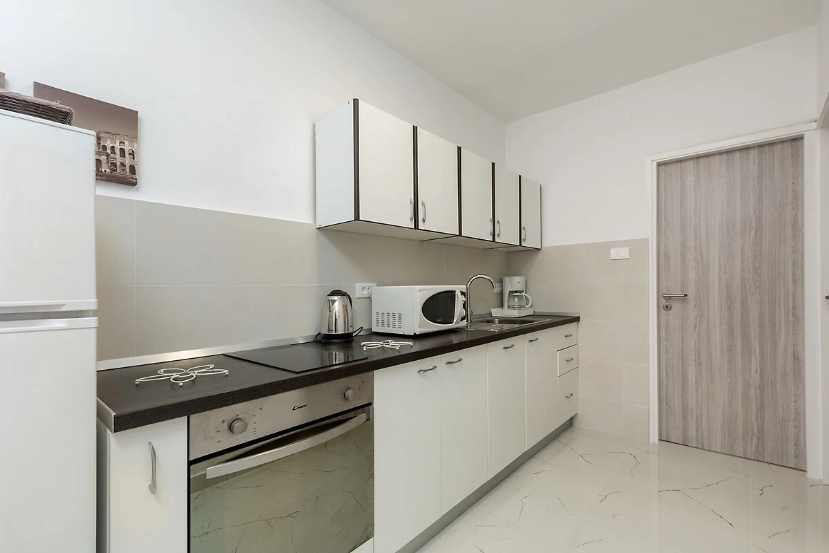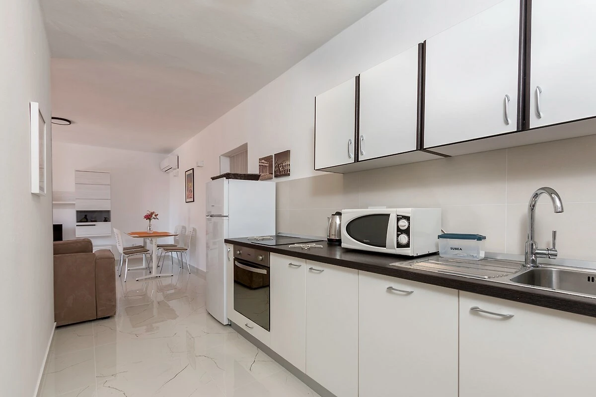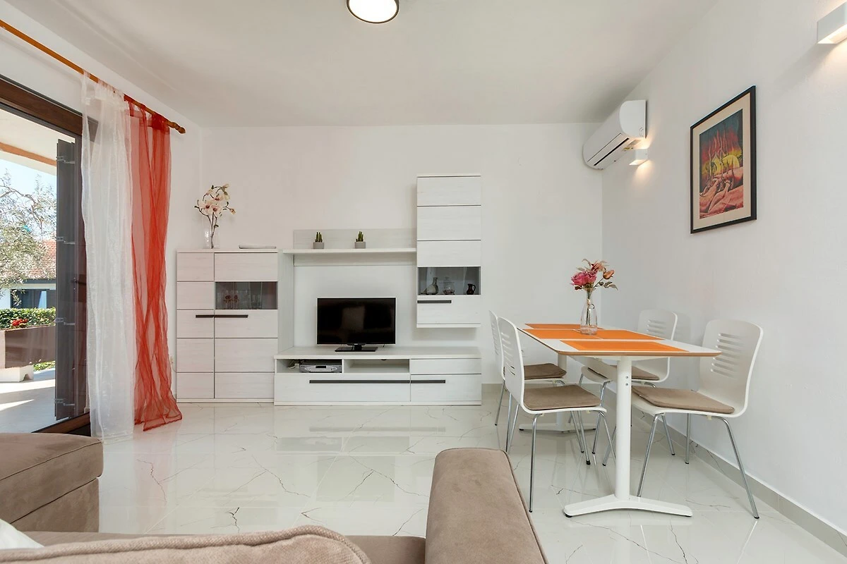 L' appartamento vacanze si trova in un appartamento casa, costruito nel 1993, è stato rinnovato nel 2012 ed è arredato in stile tradizionale. Attrezzature in comune: ombrellone, lettino da sole, parco giochi per bambini, doccia da giardino, possibilità di grigliare e mobili da giardino.
