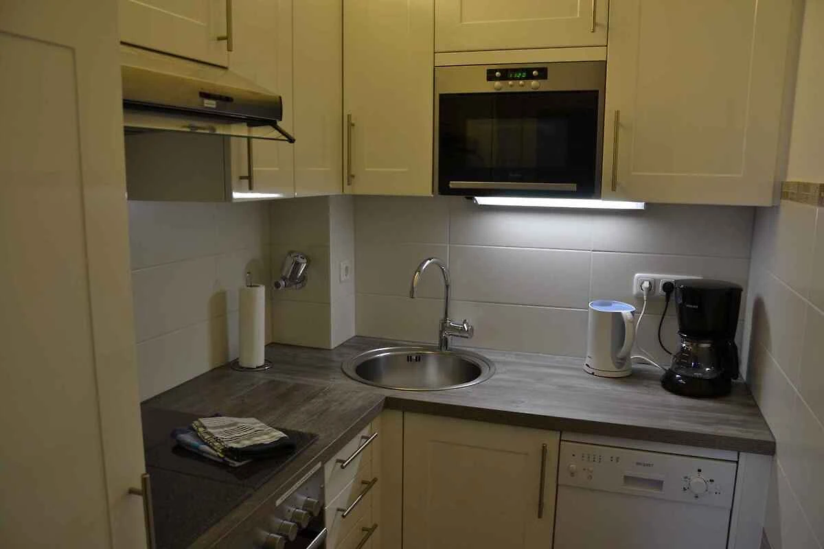 L'ingresso del vostro appartamento si trova im Erdgeschoss, é coperto e a livello del suolo e conduce direttamente nel corridoio con guardaroba. Walker Court Soggiorno/camera da letto (camera di passaggio) con 1 letto matrimoniale, TV, radio, sistema stereo, CD, zona pranzo (6 posti) e accesso al balcone (coperto, 1 tavolo, 4 sedie, ombrellone). Camera da letto con 2 letti singoli. Cucina con fornello elettrico (piano cottura ceran, 4 fornelli), forno, cappa aspirante, lavastoviglie, frigorifero (scomparto del ghiaccio), microonde, caffettiera, tostapane, bollitore elettrico e lavatrice. Bagno con doccia, 1 lavandino, WC e asciugacapelli.