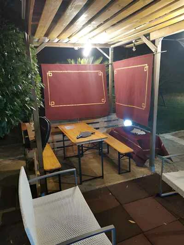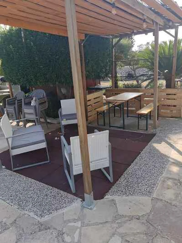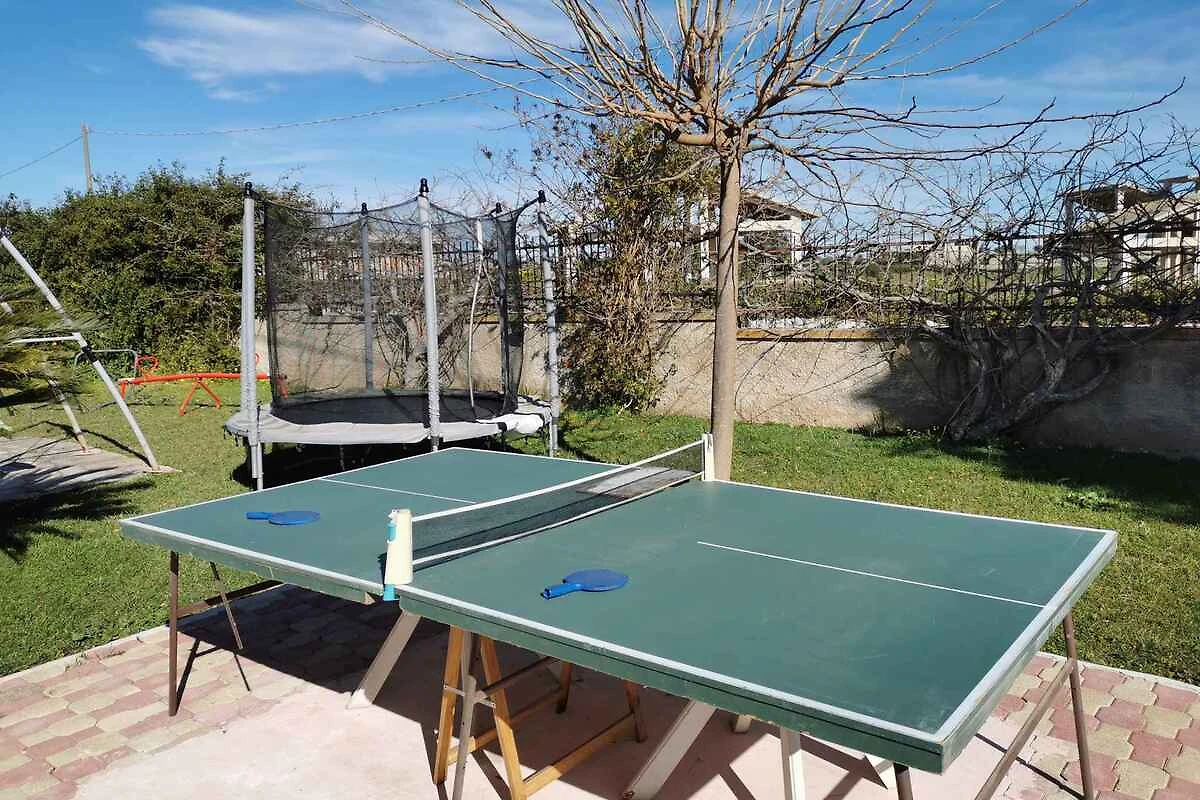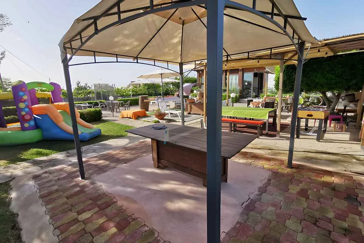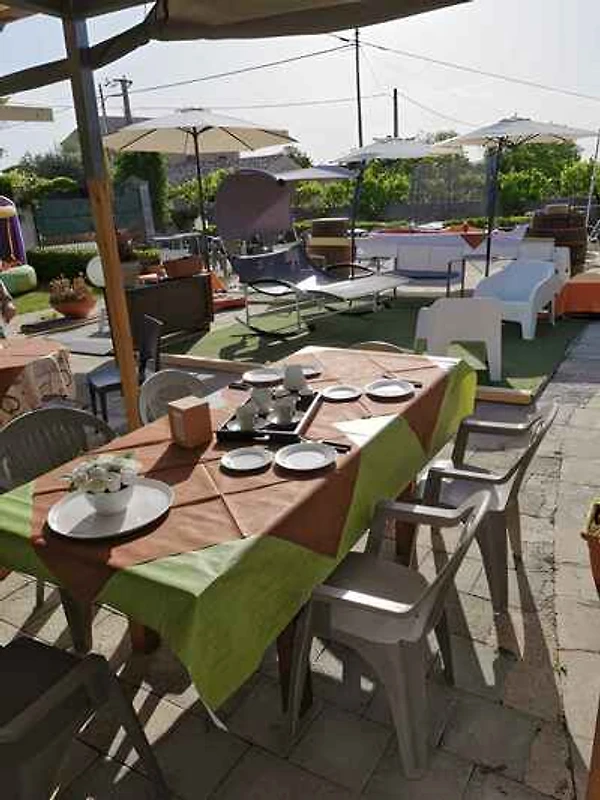 L'ingresso della vostra casa vacanze si trova im Erdgeschoss e conduce direttamente nel portico con porte di tutte le camere. Soggiorno (50 mq) con angolo di seduta, TV, radio e zona pranzo (30 posti). Camera da letto con 1 letto matrimoniale, 1 letto aggiuntivo su alloggi per dormire, 1 lettino per bambini e TV. 2 camere da letto tutto a con 1 letto matrimoniale, 1 letto aggiuntivo su alloggi per dormire e TV. Camera da letto con 1 letto matrimoniale, 1 lettino per bambini, 1 culla e TV. Camera da letto con 1 letto matrimoniale e TV. Angolo cucina nel soggiorno con forno, lavastoviglie e frigorifero. Bagno con doccia, 1 lavandino, WC, bidet e finestra. WC separato con 1 lavandino e WC.