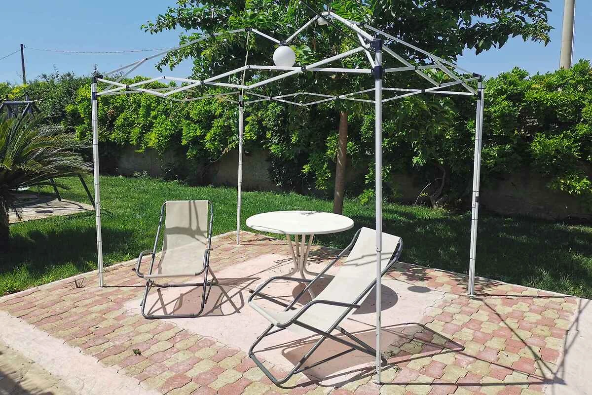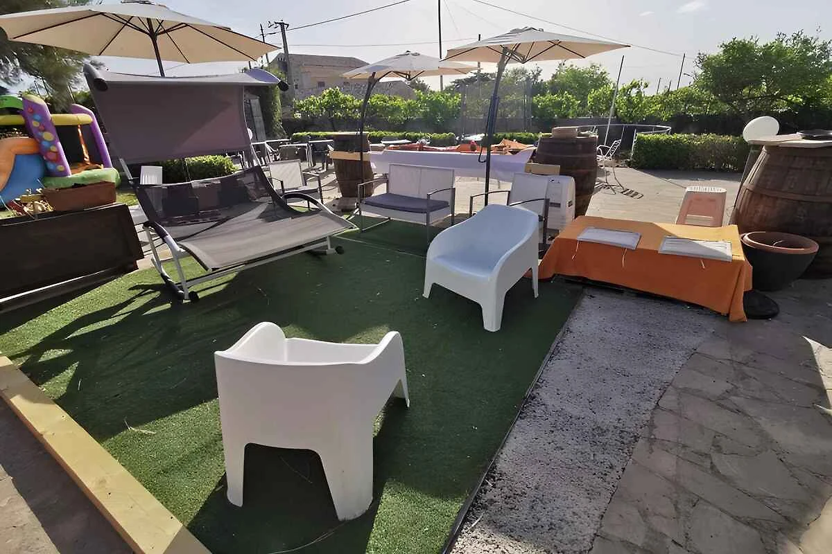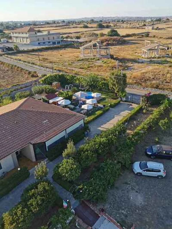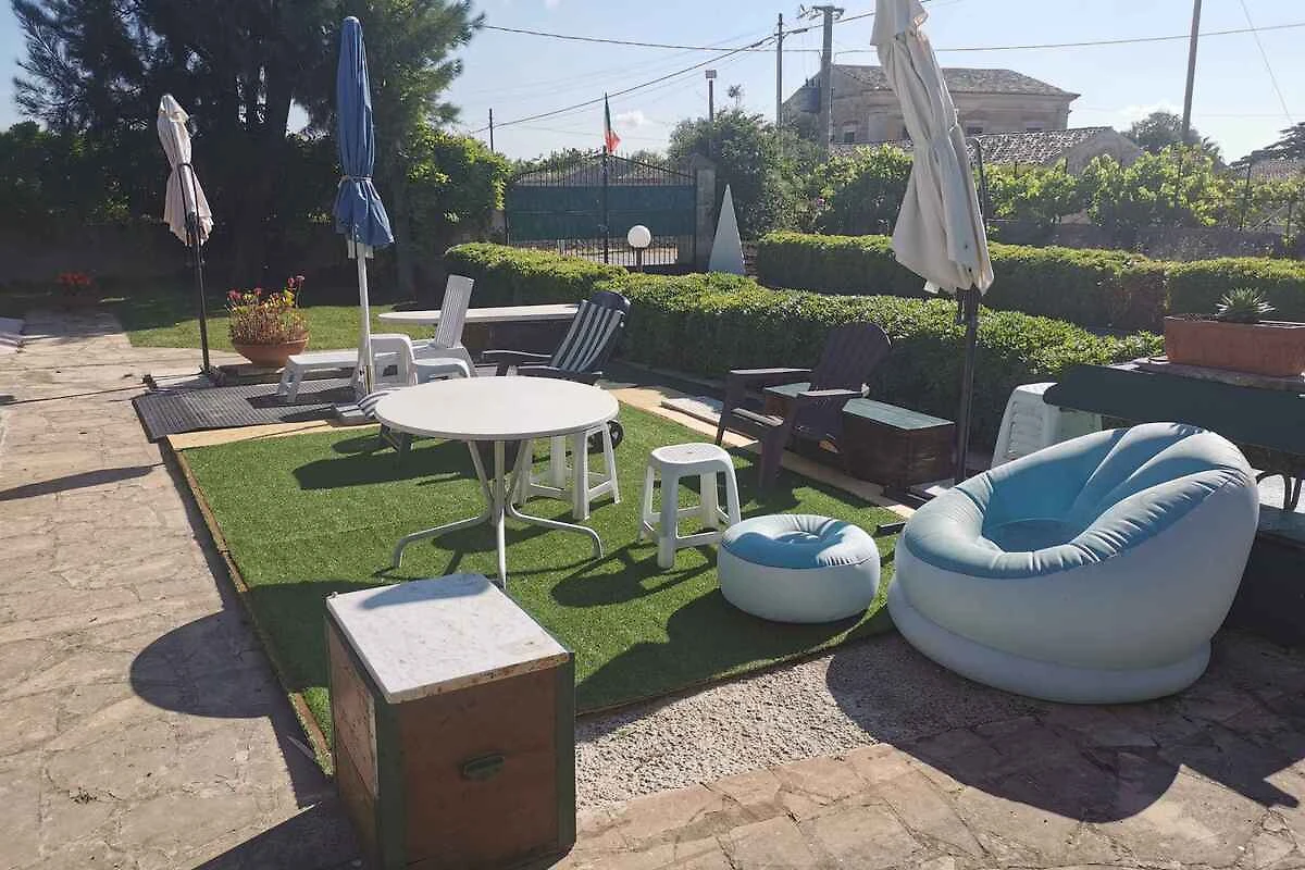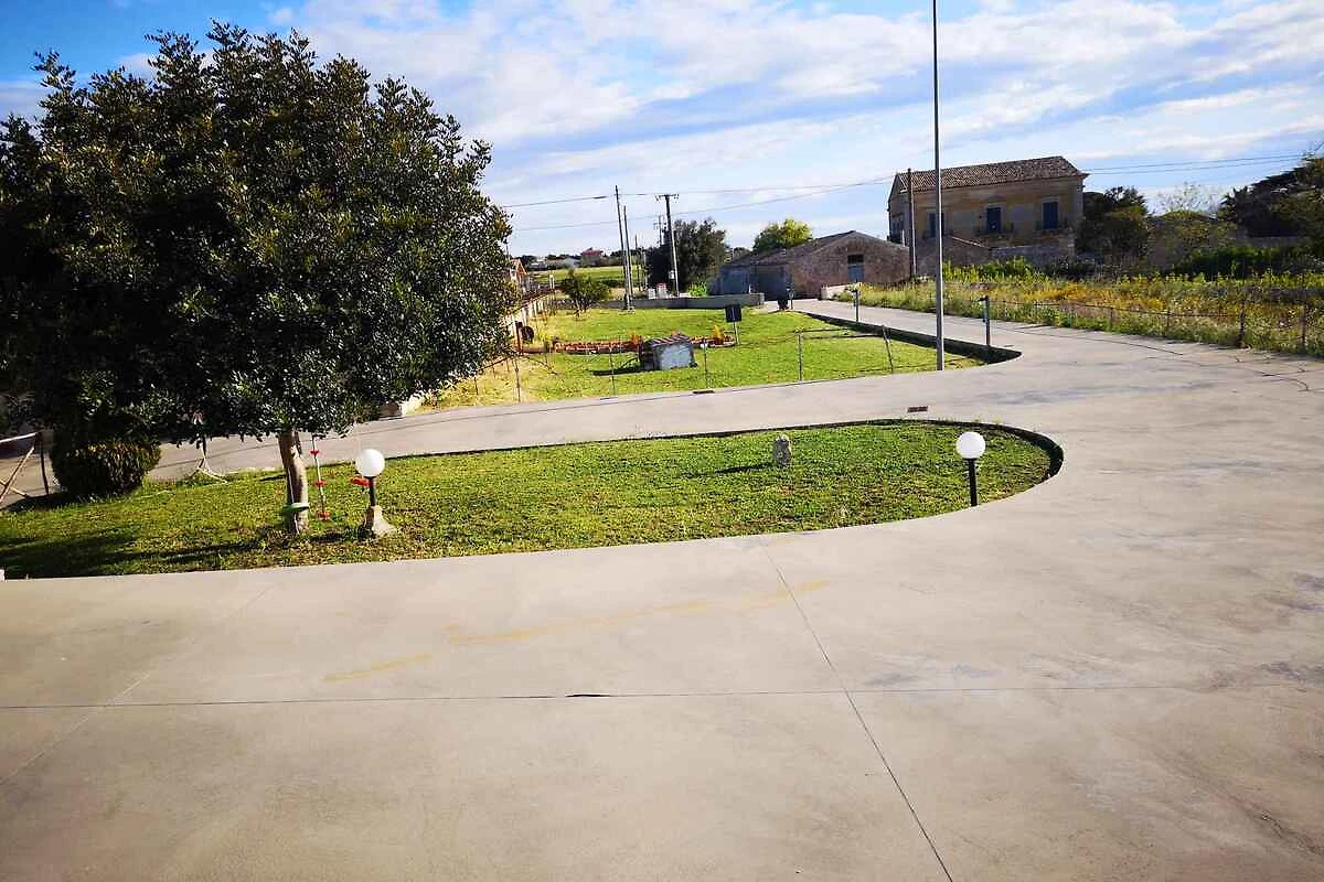 Modica, 450 s.l.m. La casa vacanza si trova in una trama del giardino chiuso, grande 2000 mq. Il padrone di casa vive in un altro edificio nella stessa proprietá. L'accesso avviene direttamente dalla strada principale. Parcheggio (per 20 auto) in posto auto coperto e sulla proprietà.