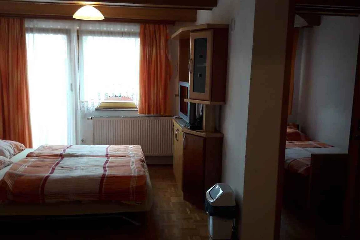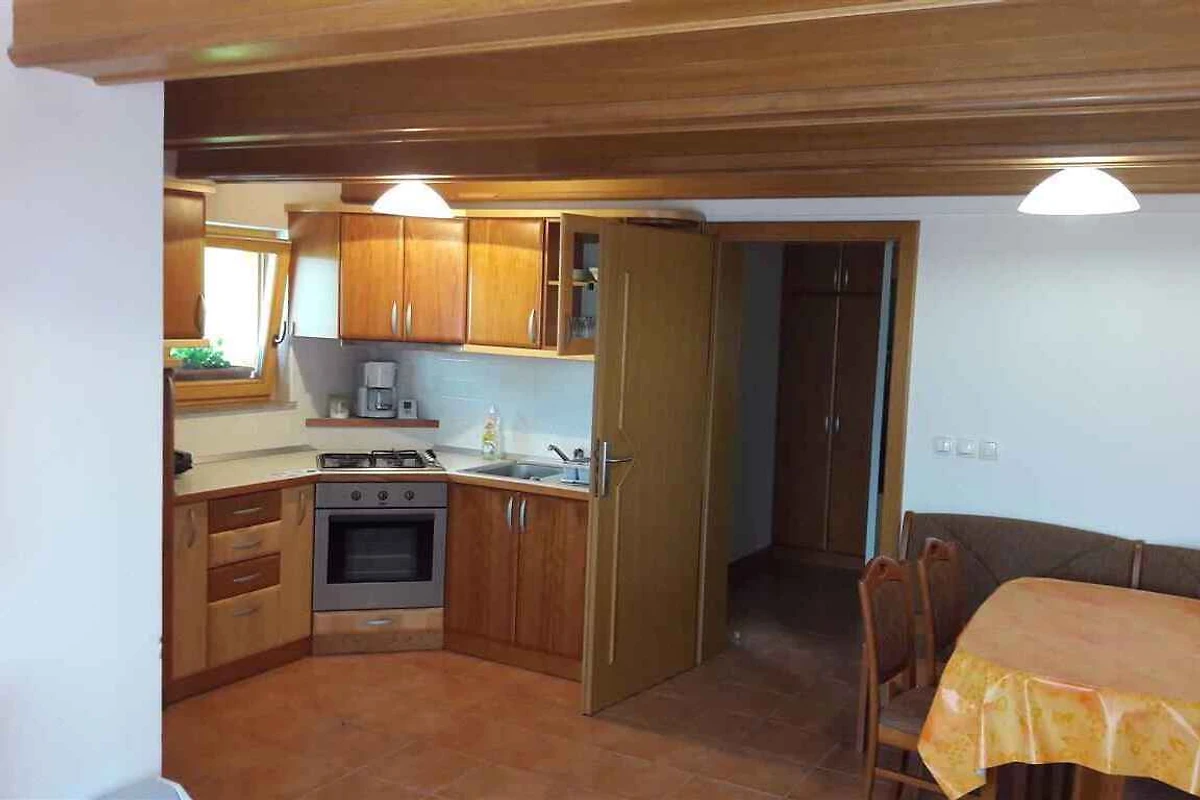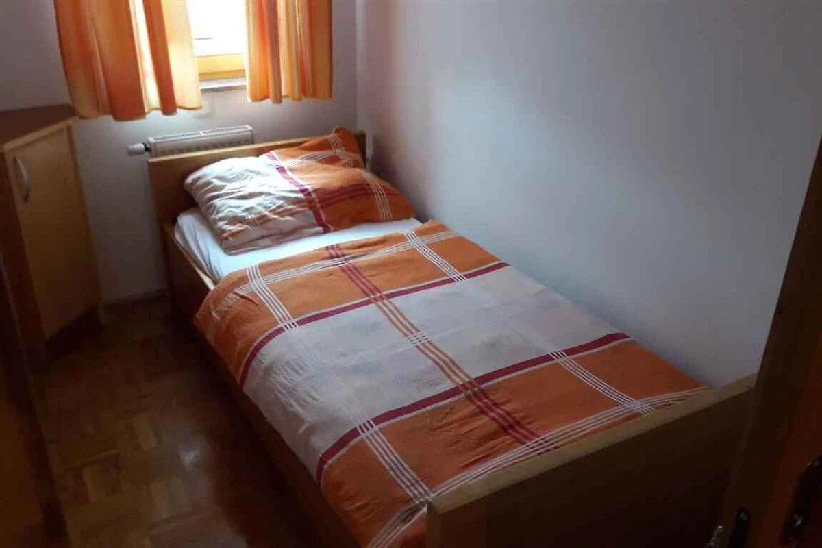Soggiorno/camera da letto con 1 letto matrimoniale, 1 letto singolo, su letto (più piccolo 2,00 x 0,90 m) (adatto solo per bambini), 1 culla, TV, zona pranzo e accesso al balcone. Camera da letto. La cucinetta con stufa a gas, forno e frigorifero. Bagno con doccia e WC.