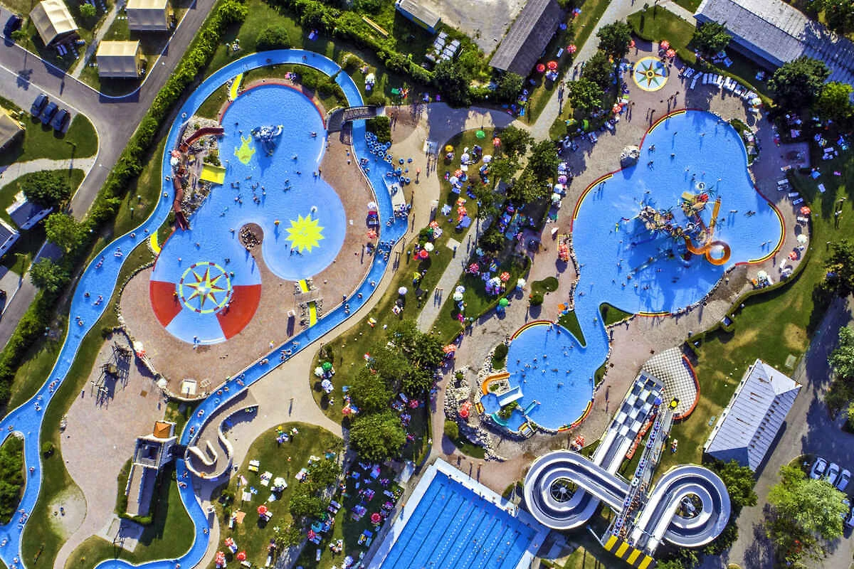Piscina esterna. Piscina per bambini. Piscina interna. Il villaggio offre due parchi termali separati per garantire il divertimento tutto l'anno. La Riviera Termale estiva copre un'area di 10.000 metri quadrati di acqua termale e offre una varietà di piscine di diverse forme e dimensioni, adatte sia agli adulti che ai bambini. Le attrazioni principali includono scivoli d'acqua, un'isola dei pirati, un canale di corrente, piscine a onde e vasche idromassaggio, perfette per rilassarsi al sole. La Riviera Termale Invernale, con i suoi 2.300 m² di acqua termale riscaldata, è ideale per vacanze benessere tutto l'anno e offre piscine interne ed esterne, scivoli d'acqua e altre attrazioni per grandi e piccini.