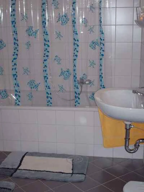 L'ingresso del vostro appartamento conduce sopra una scala esterna direttamente nel vestibolo. Soggiorno/camera da letto con 1 letto aggiuntivo su posti a sedere, angolo di seduta, TV, radio, zona pranzo (4 posti) e accesso alla terrazza (45 mq). Camera da letto con 1 letto matrimoniale e 1 letto aggiuntivo. La cucinetta con zona pranzo, fornello elettrico (piano cottura ceran), forno, cappa aspirante, frigorifero (scomparto del ghiaccio), caffettiera e bollitore elettrico. Bagno con vasca da bagno con dispositivo doccia, 1 lavandino e WC.