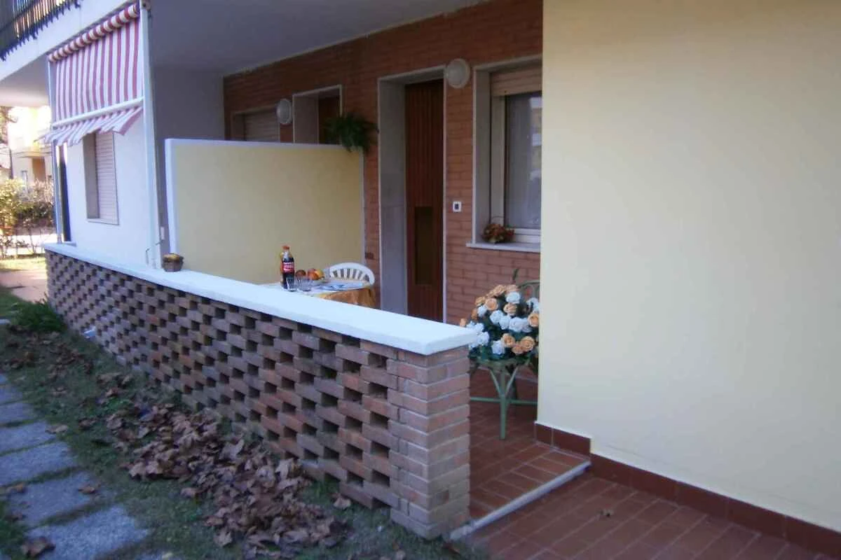 Bibione, frazione Spiaggia. L' appartamento vacanze si trova in un villaggio turistico, in una trama del giardino. Parcheggio (per 1 auto) sulla proprietà.