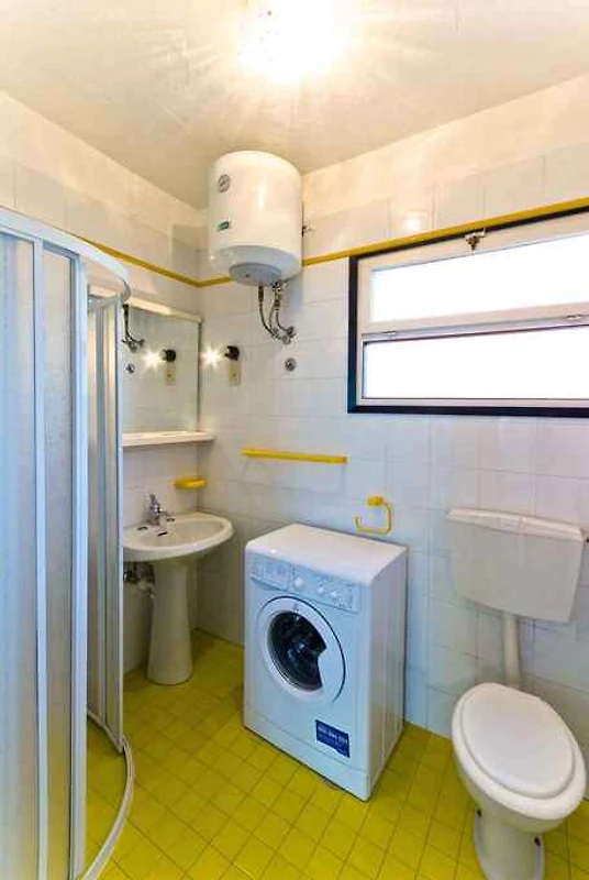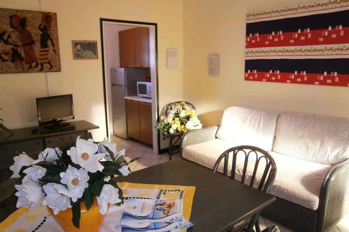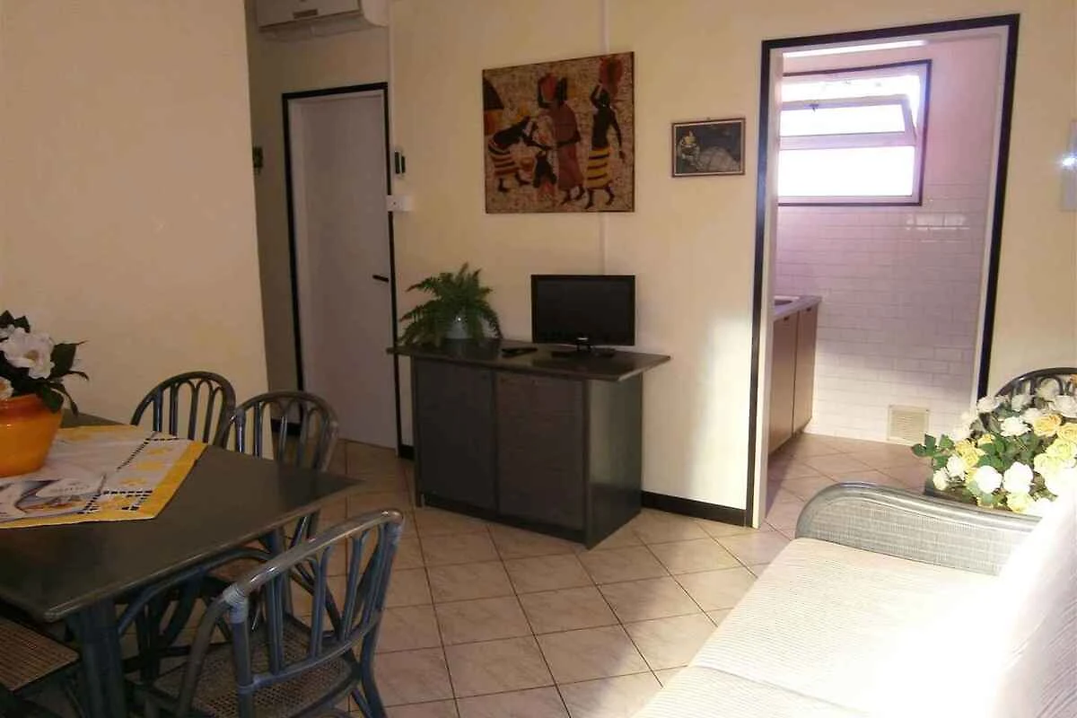L appartamento si trova nel pianterreno o al primo piano. Soggiorno/camera da letto con 2 letti aggiuntivi su divano/sofa, TV e accesso al balcone. Camera da letto con 3 letti singoli. Camera da letto con 1 letto matrimoniale, 1 culla e Culla su richiesta a pagamento. La cucinetta con frigorifero (scomparto del ghiaccio) e microonde. Bagno con doccia e WC.