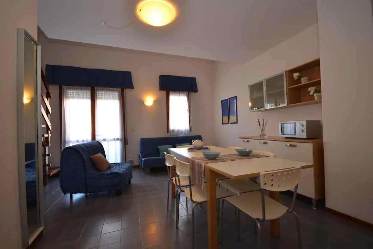 Bibione, frazione Lido dei Pini. L' appartamento vacanze si trova in un residence. Parcheggio (per 1 auto) sulla proprietà.