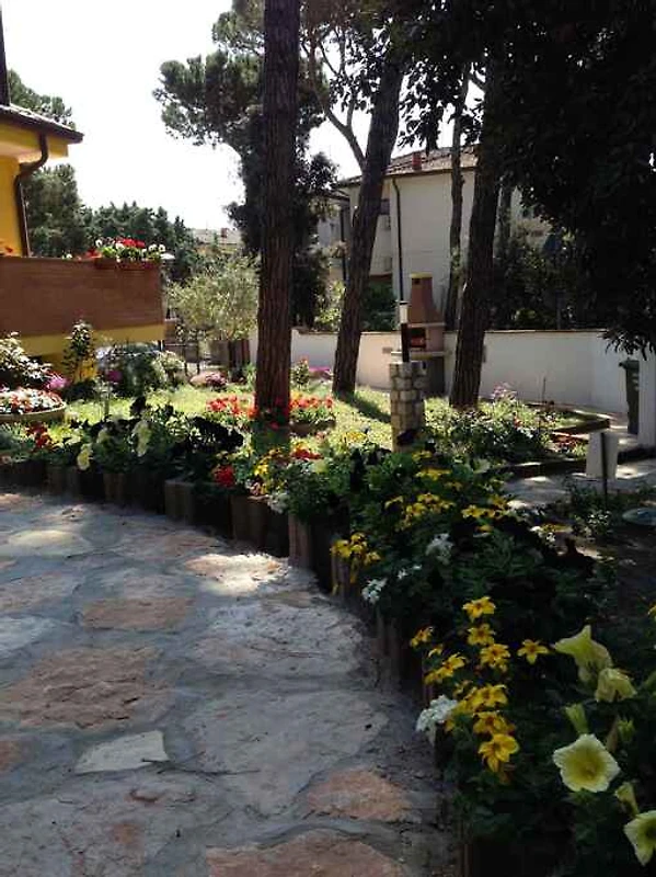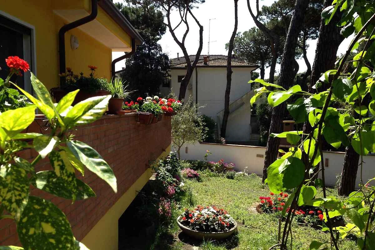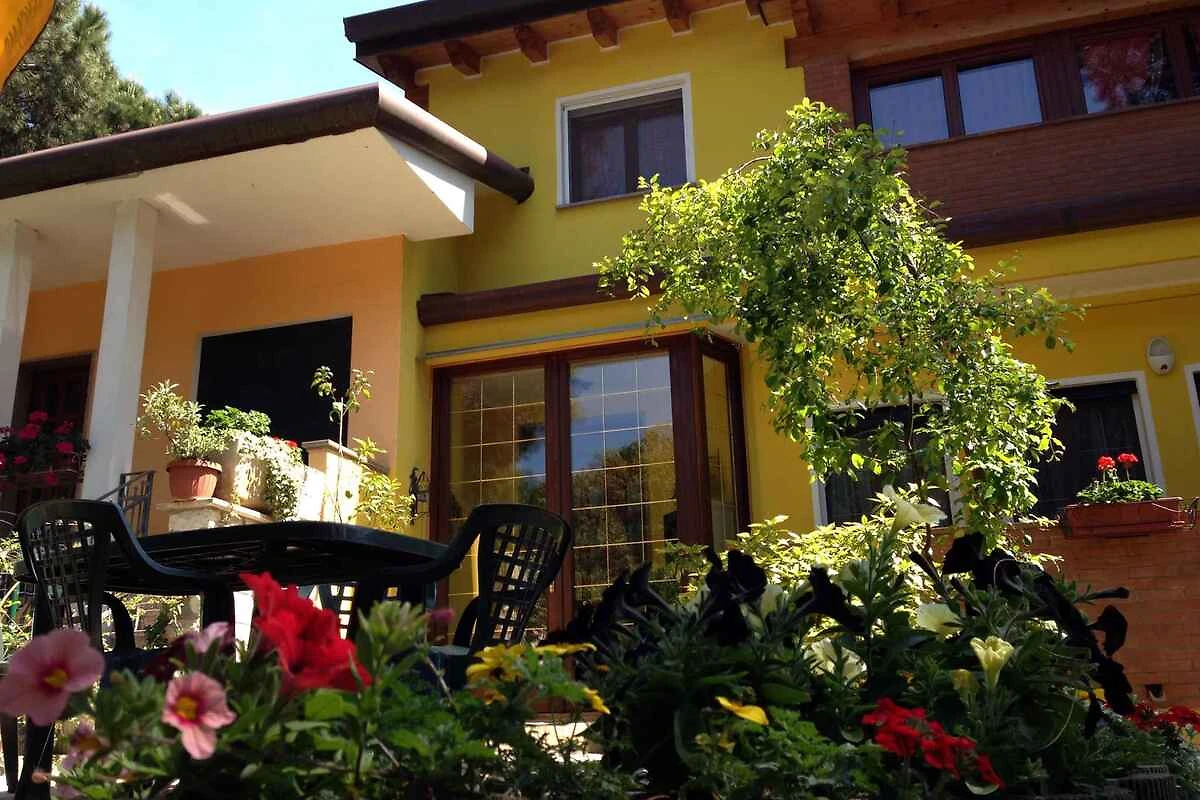 Rosolina Mare. L' appartamento vacanze si trova in una trama del giardino grande 300 mq con prato, fiori, arbusti e alberi. Il proprietario non abita nella casa o nella proprietá. L'accesso avviene vicino a una strada secondaria (asfaltata). Parcheggio (per 1 auto) sulla proprietà.