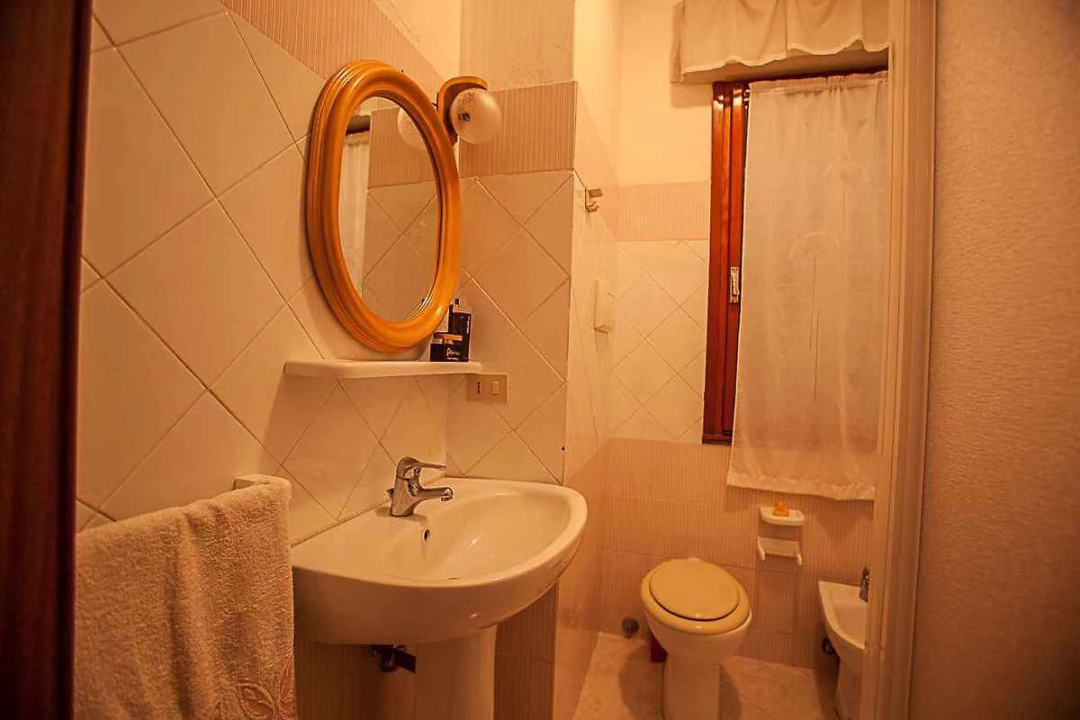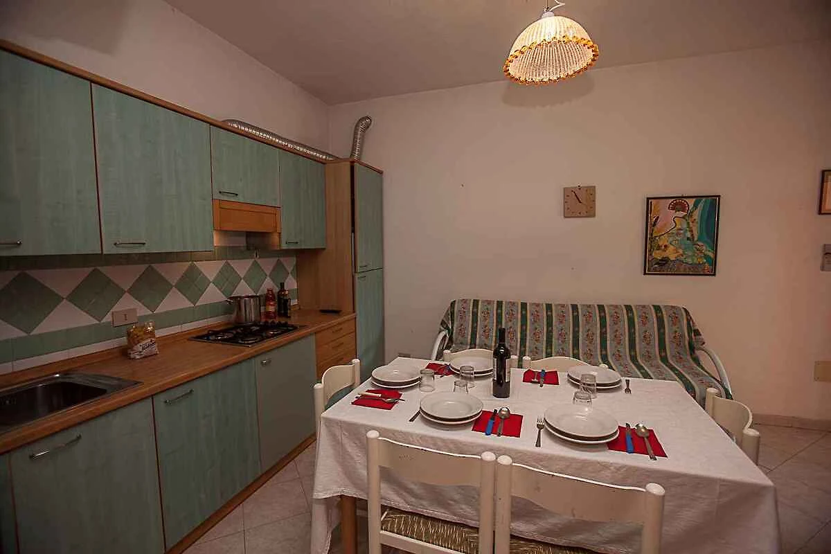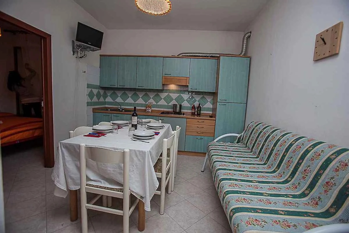 L'ingresso del vostro appartamento si trova im Erdgeschoss, é a livello del suolo e conduce direttamente nel soggiorno. Soggiorno con 1 letto aggiuntivo su divano/sofa, angolo di seduta, TV, zona pranzo (5 posti) e accesso alla terrazza (mobili da giardino). Camera da letto con 2 letti singoli. Camera da letto con 1 letto matrimoniale e TV. Angolo cucina nel soggiorno con stufa a gas e frigorifero (scomparto del ghiaccio). Bagno con doccia, 1 lavandino, WC e bidet.