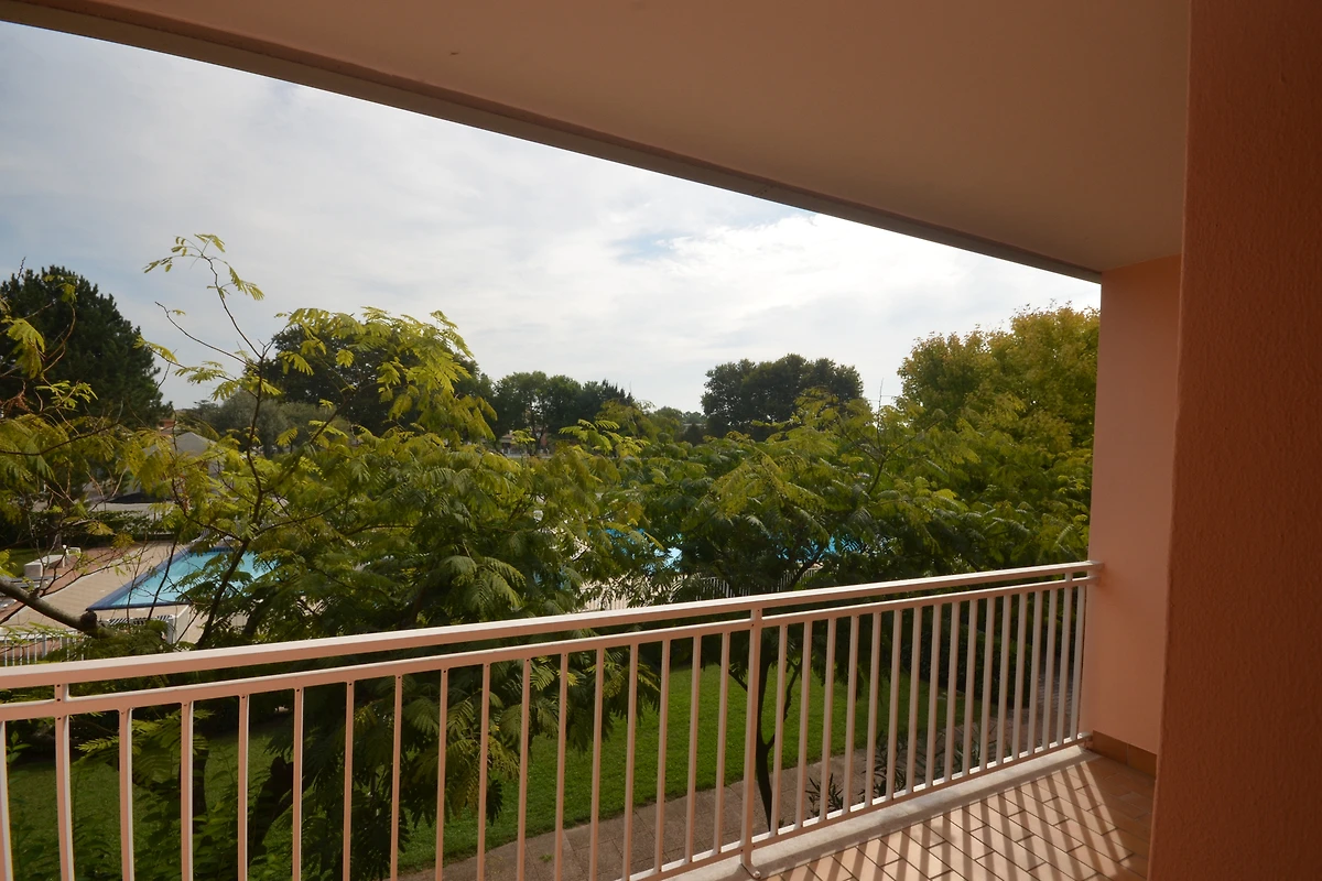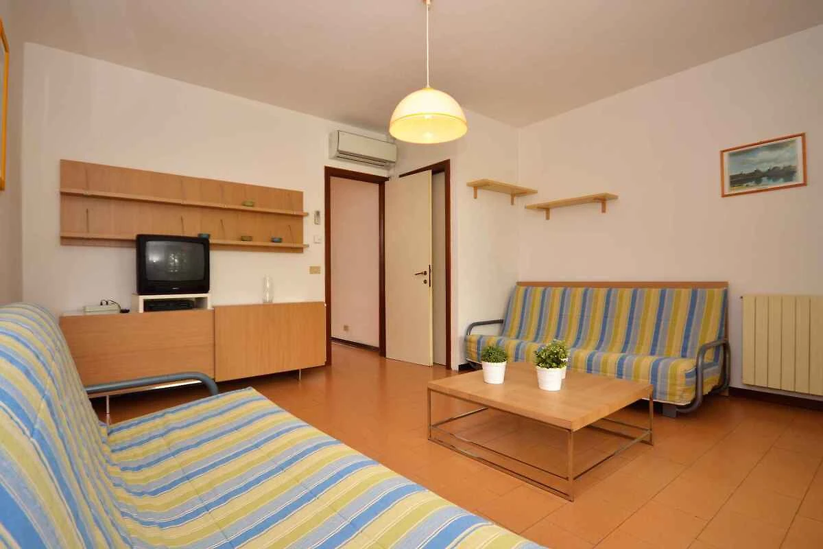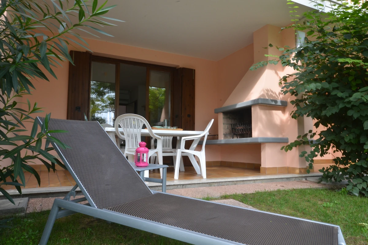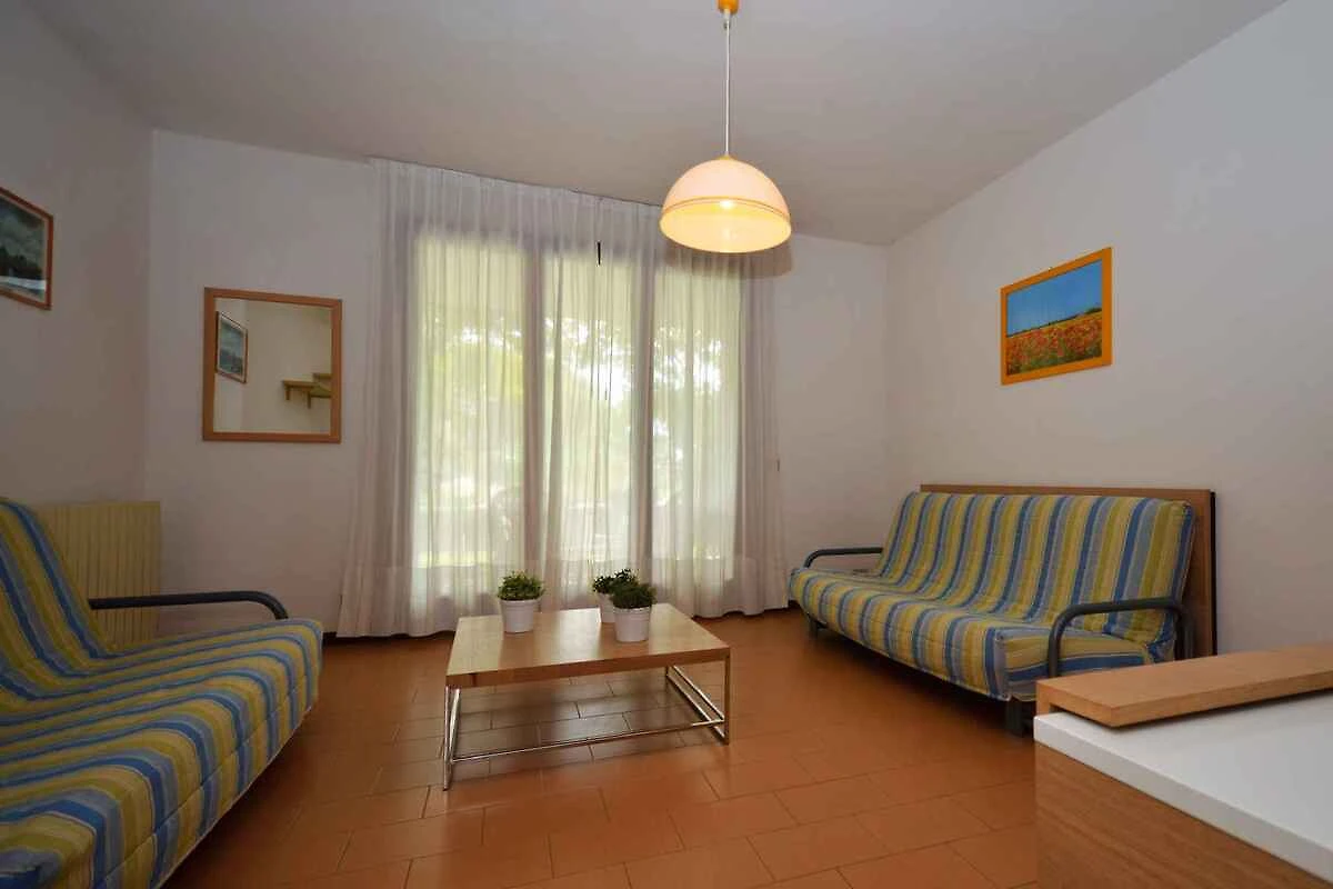 Bibione, frazione Spiaggia. La casa vacanza si trova in un villaggio turistico, in una trama del giardino. Parcheggio in garage e sulla proprietà.