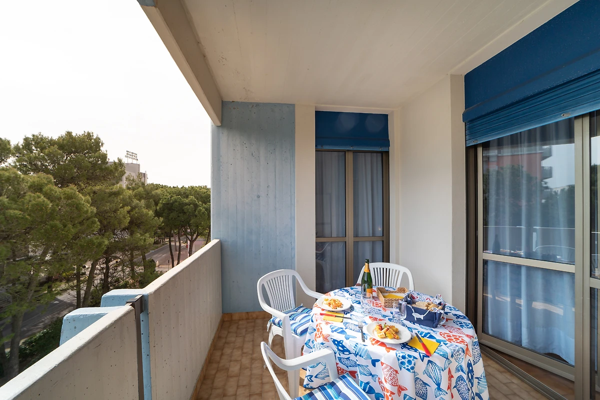 Bibione, frazione Spiaggia. L' appartamento vacanze si trova in un residence, in una trama del giardino. Parcheggio sulla proprietà. Il parcheggio è in parte coperta.