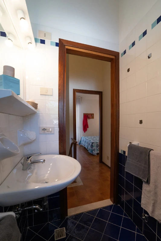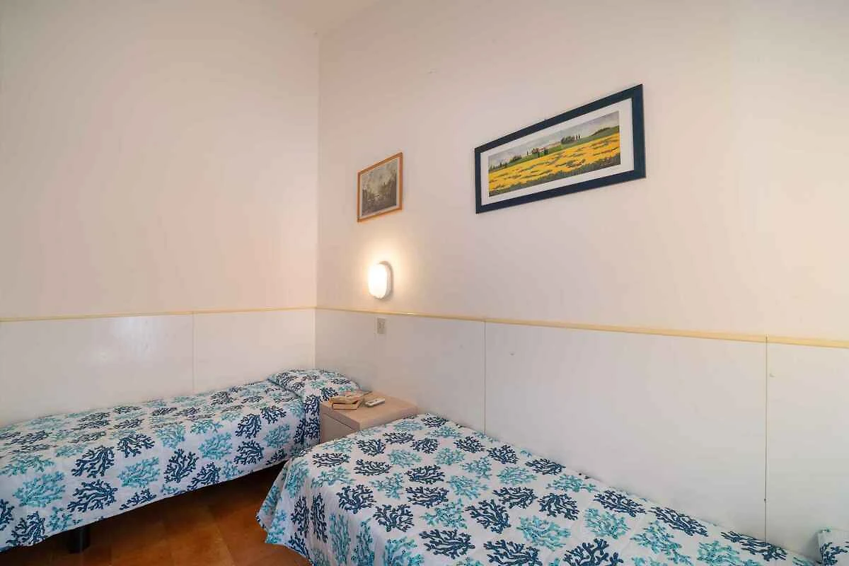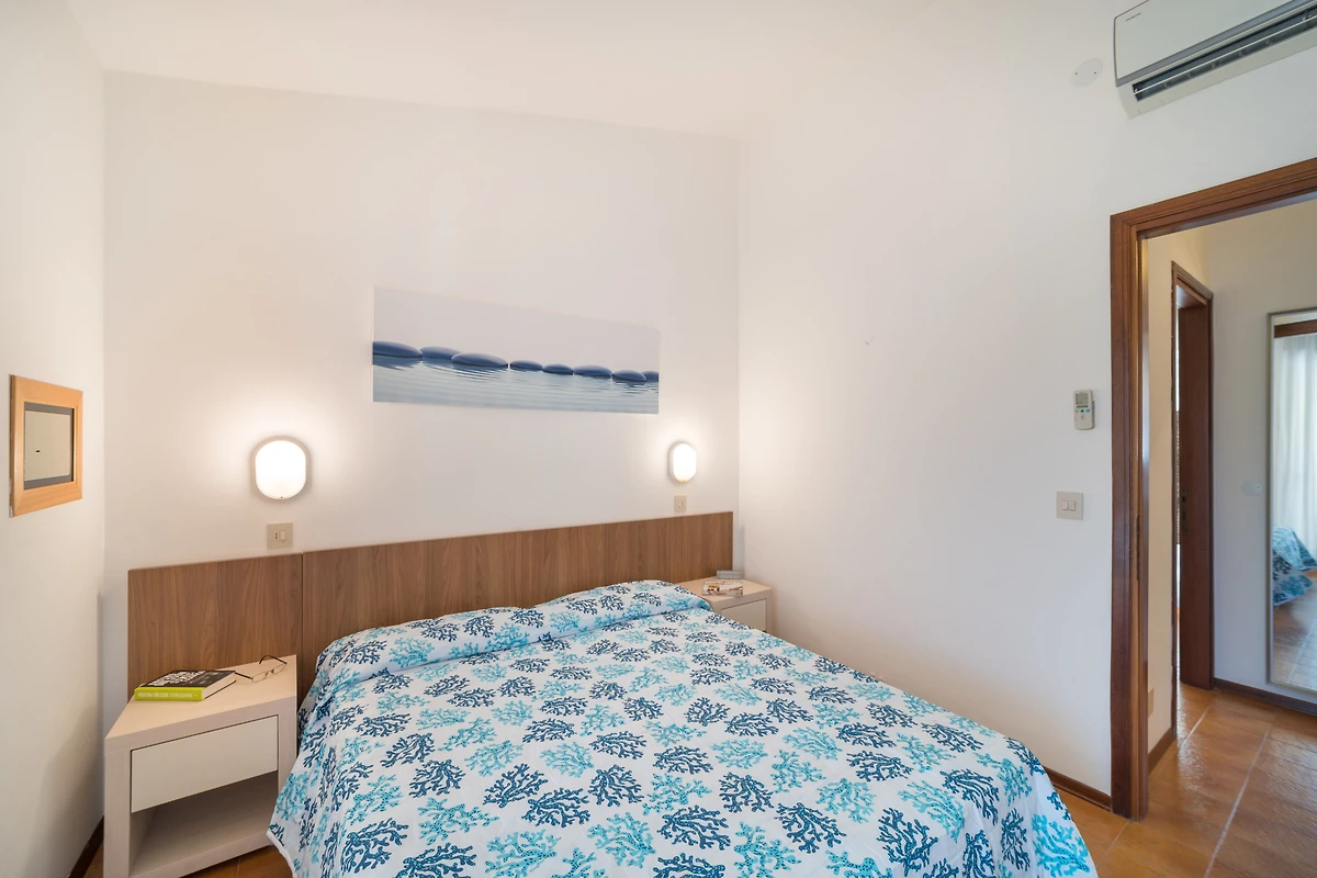 1° piano: Camera da letto con 1 letto matrimoniale, 1 culla, accesso al balcone e Culla per bambini su richiesta. Camera da letto con 1 letto a castello e accesso al balcone. Bagno con doccia, 1 lavandino e WC.
