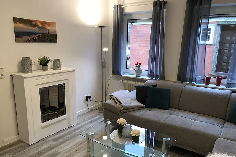 Tranquillo, moderno e spazioso, appartamento di circa 100 mq al piano terra con camino a etanolo, giardino d'inverno e uso del giardino. Il giardino sul lato ovest confina direttamente con la diga, mentre dal lato est si gode di una splendida vista sul porto turistico di Harlesiel e su Harlesiel. Completamente ristrutturato e arredato a nuovo nell'ottobre 2018. Posto auto di proprietà e rimessa per biciclette coperta.