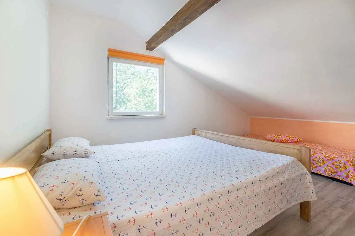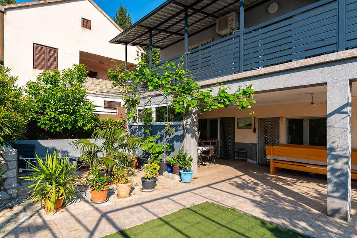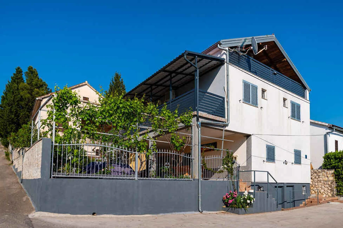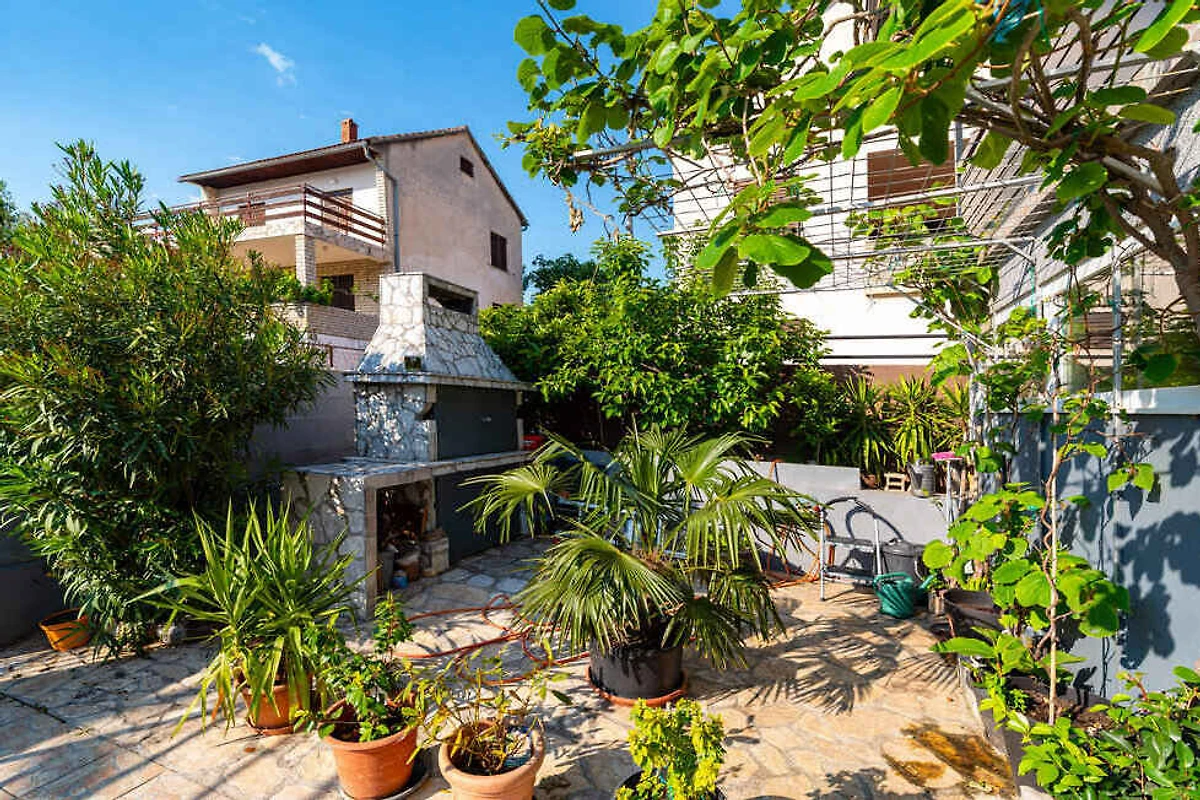 Šušnjar. L'appartamento per vacanze si trova su un terreno di giardino recintato di 200 mq con fiori e arbusti. Il locatore abita solo saltuariamente nella casa, ma utilizza un ingresso separato. L'accesso avviene tramite una strada secondaria (asfaltata). Parcheggio (per 3 auto) sulla proprietà.