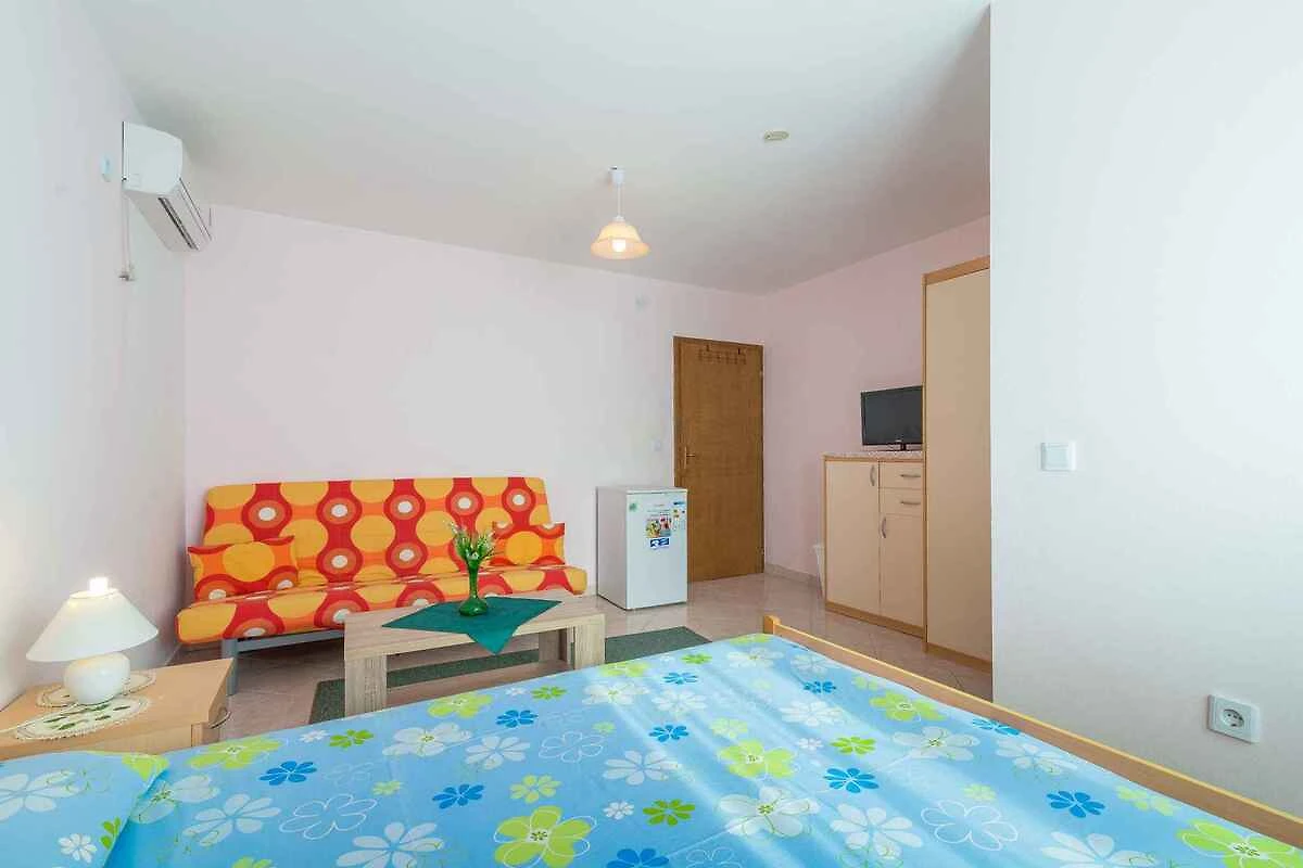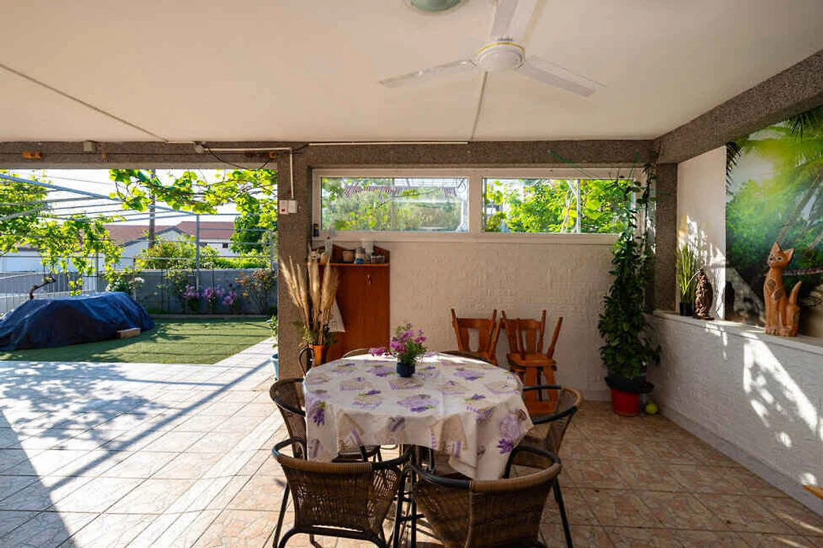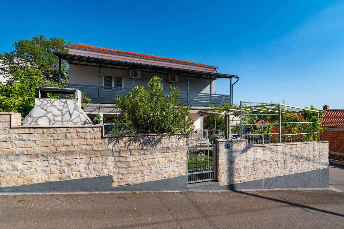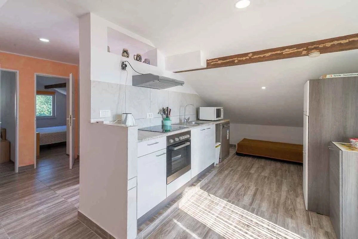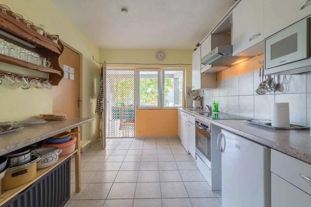 Šušnjar. L'appartamento per vacanze si trova su un terreno di giardino recintato di 200 mq con fiori e arbusti. Il locatore abita solo saltuariamente nella casa, ma utilizza un ingresso separato. L'accesso avviene tramite una strada secondaria (asfaltata). Parcheggio (per 3 auto) sulla proprietà.