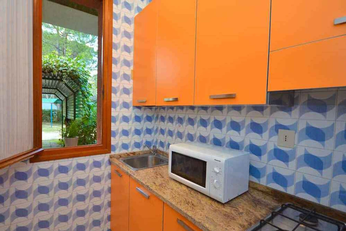 Bibione, frazione Lido dei Pini. L' appartamento vacanze si trova in una trama del giardino chiuso. L'accesso avviene vicino a una strada secondaria (asfaltata). Parcheggio sulla proprietà.