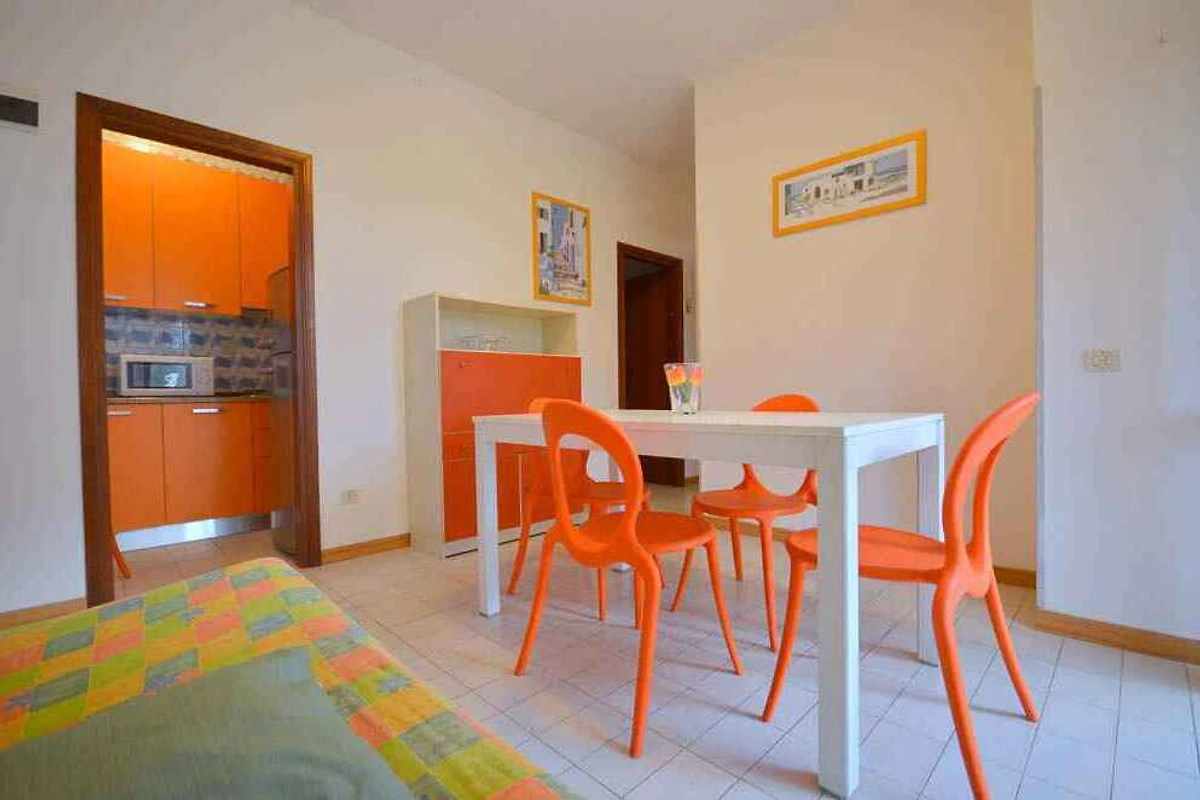 L'ingresso del vostro appartamento si trova im Erdgeschoss. Soggiorno/camera da letto con 2 letti aggiuntivi su divano letto doppio, TV e accesso alla terrazza. Camera da letto con 2 letti singoli. Camera da letto con 2 letti singoli, 1 culla e Lettino per bambini su richiesta. Cucina con stufa a gas, frigorifero, microonde e caffettiera. Bagno con doccia, 1 lavandino e WC.
