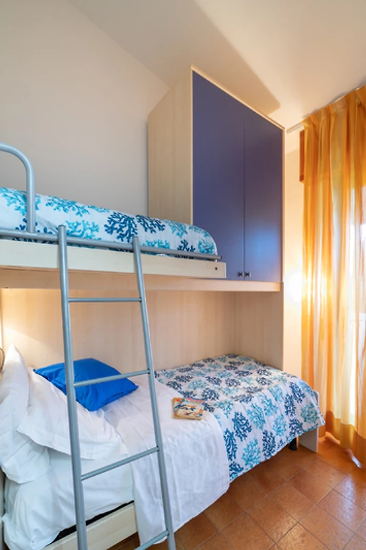 1° piano: Camera da letto con 1 letto matrimoniale, 1 culla, accesso al balcone e Culla per bambini su richiesta. Camera da letto con 1 letto a castello e accesso al balcone. Bagno con doccia, 1 lavandino e WC.