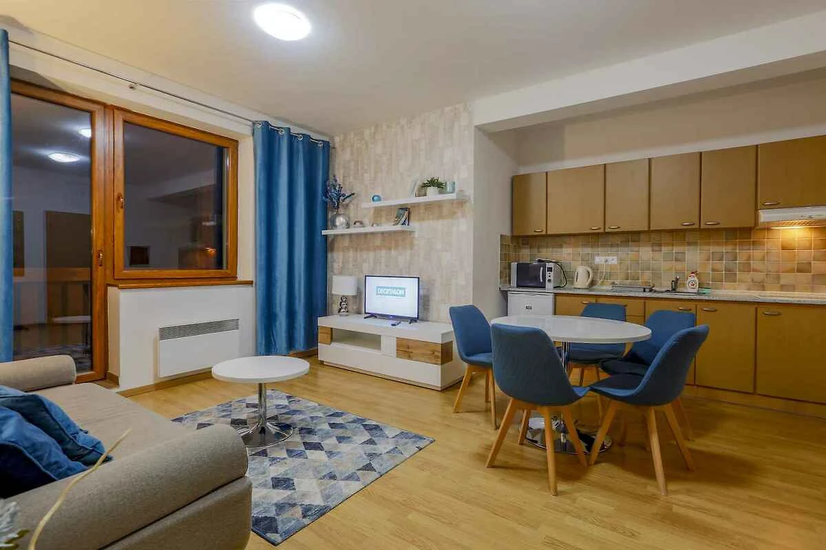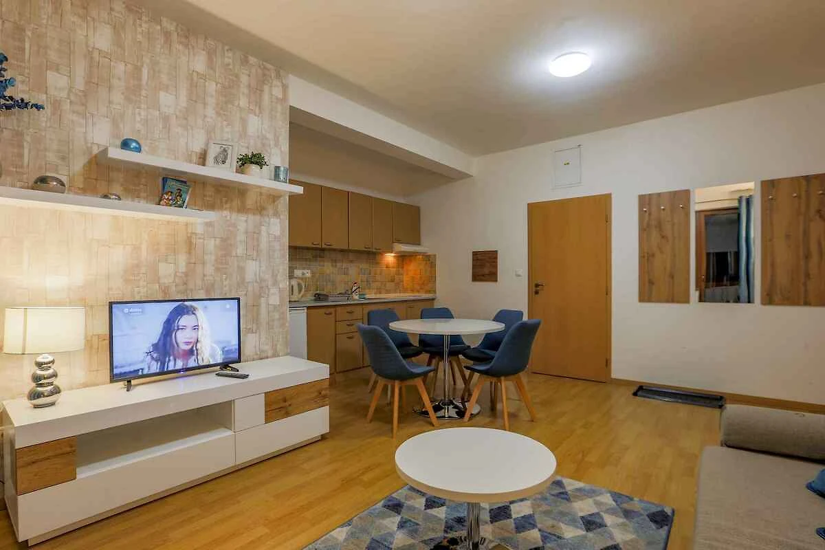 L' appartamento vacanze si trova in una casa, costruito nel 2008 ed è arredato moderno. La proprietà si trova in un luogo di villeggiatura, in periferia. Anche a causa della vista dalla struttura sulle montagne e tranquilla e soleggiata posizione, il domicilio è popolare.