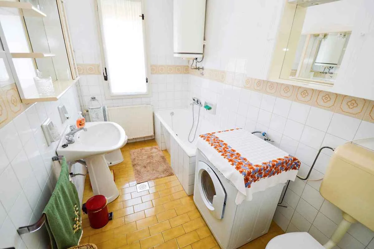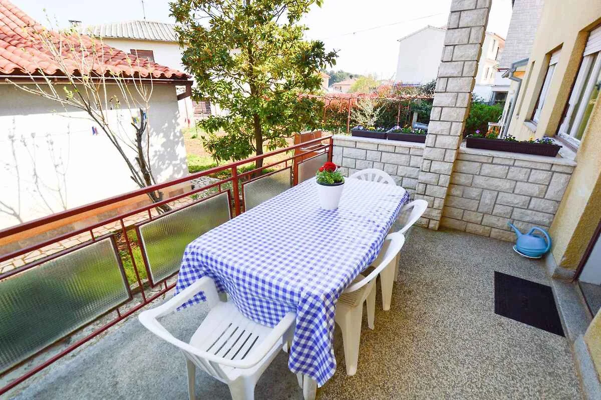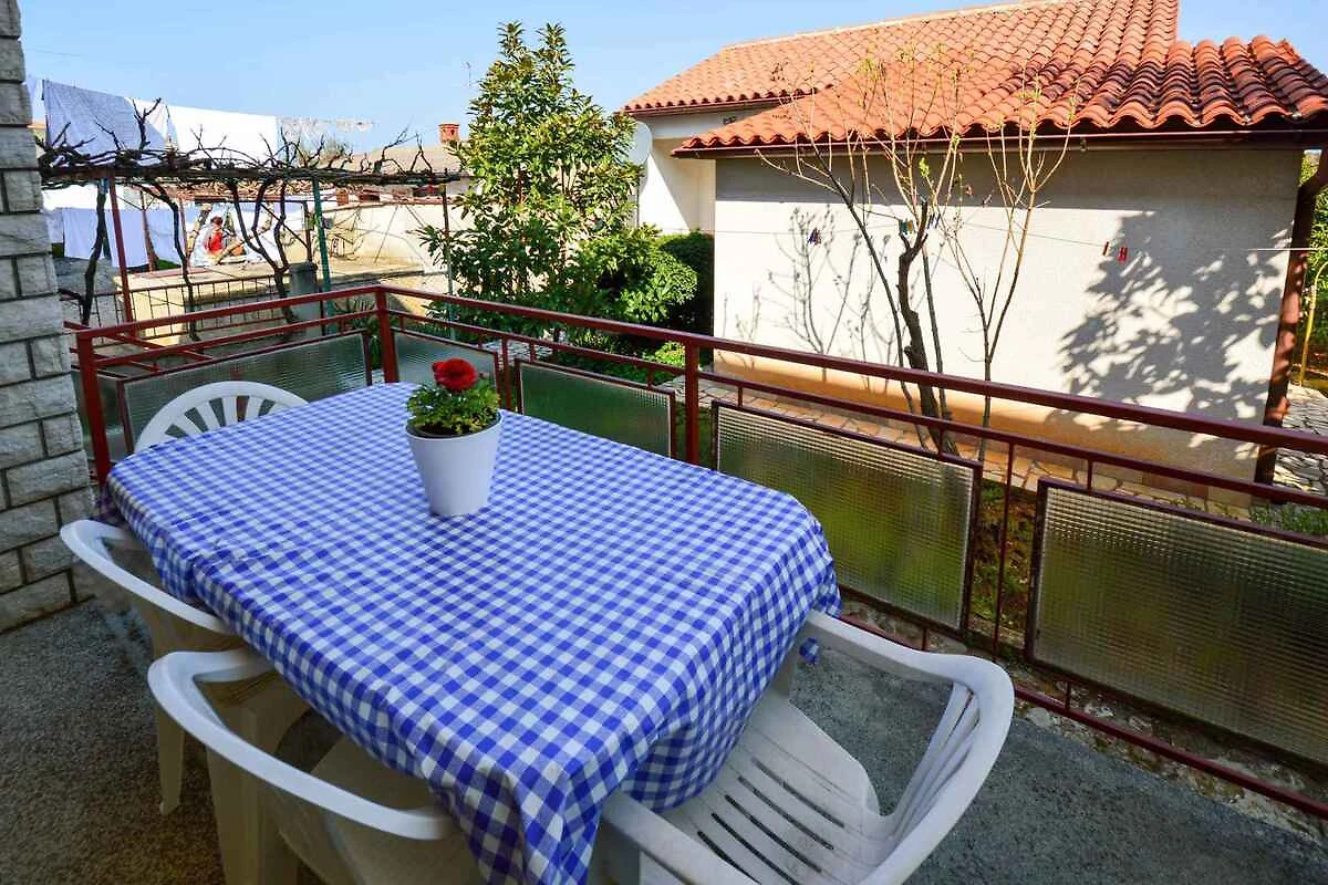 Pula. L' appartamento vacanze si trova in una trama del giardino chiuso con arbusti e alberi, delimitata da una recinzione e un muro. Il proprietario non abita nella casa o nella proprietá. L'accesso avviene vicino a una strada secondaria (asfaltata). Parcheggio sulla strada davanti alla casa.