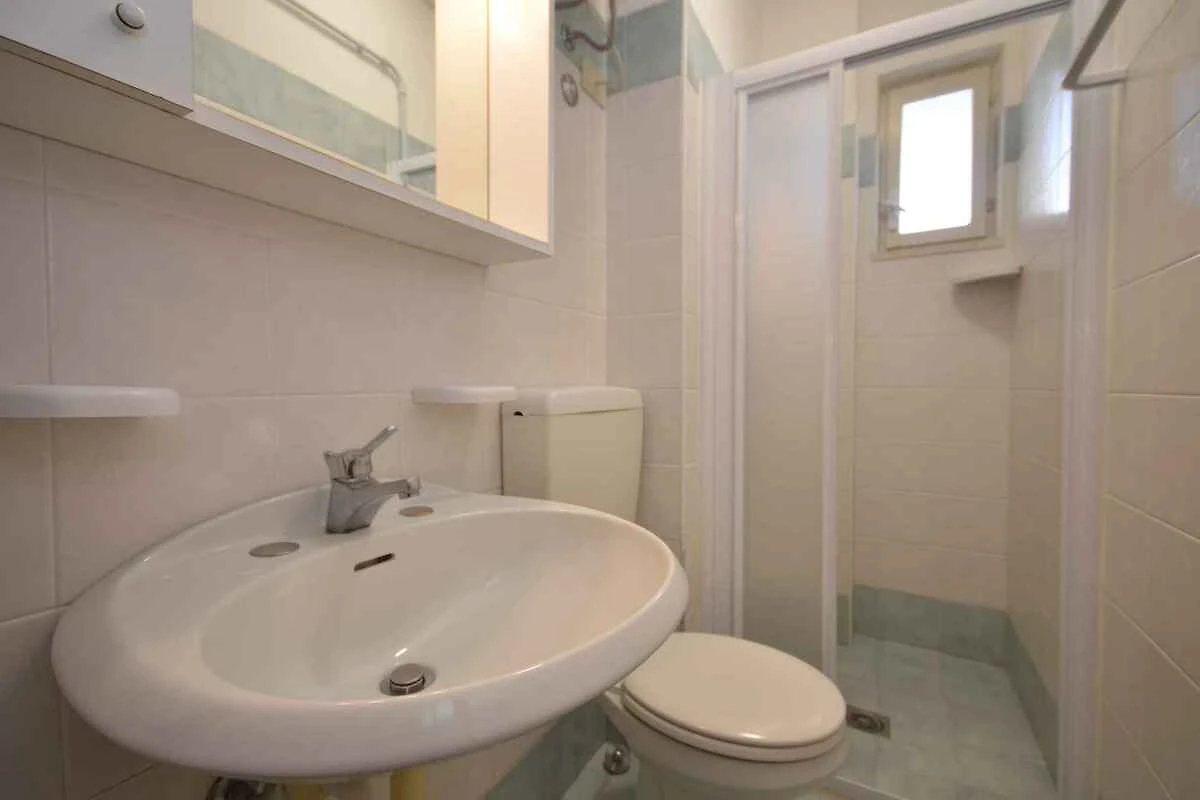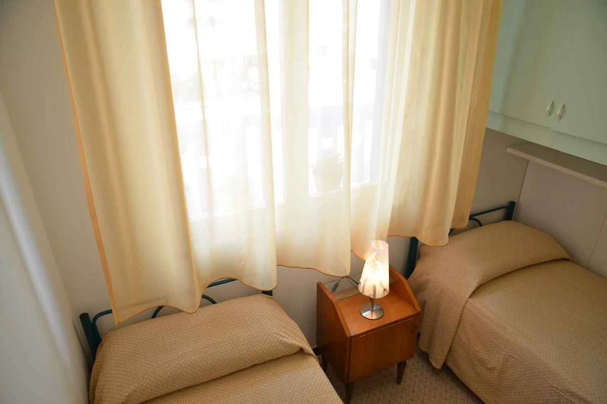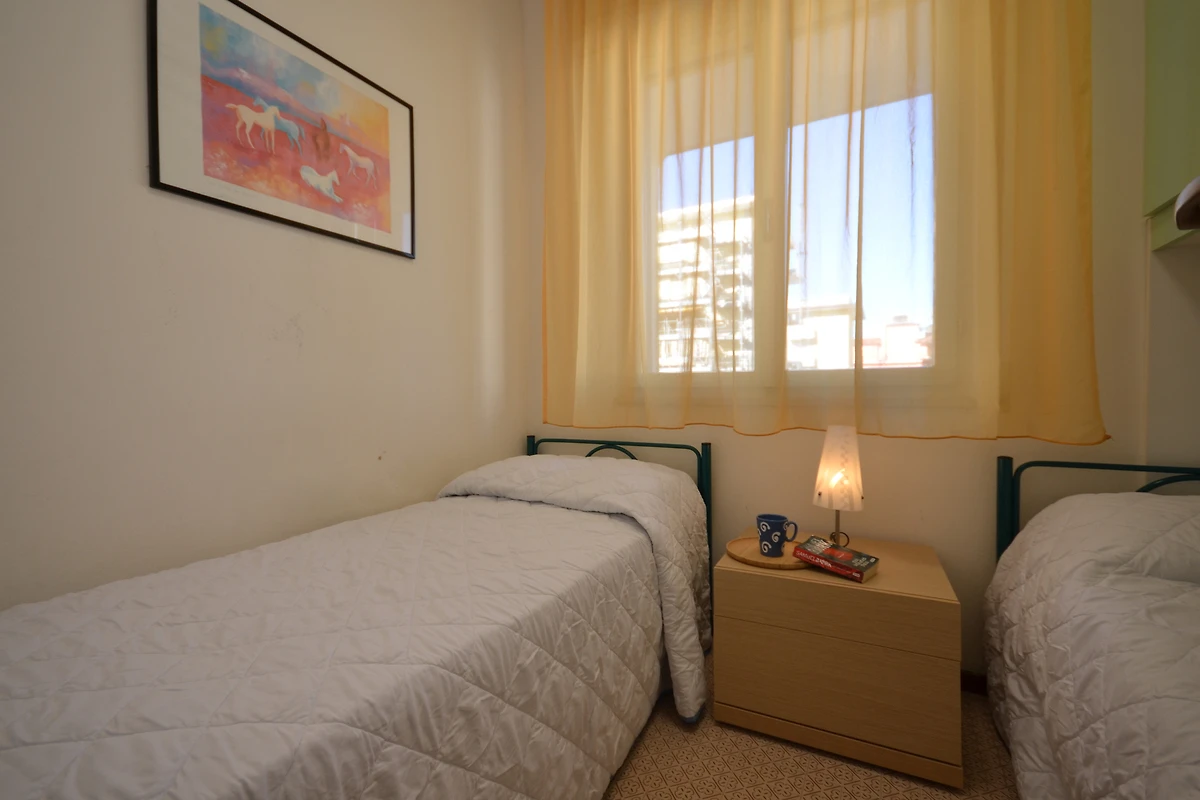 Soggiorno/camera da letto con 1 letto aggiuntivo su divano/sofa, TV, zona pranzo e accesso al balcone. Camera da letto con 2 letti singoli. Camera da letto con 1 letto matrimoniale e accesso al balcone. La cucinetta con stufa a gas, frigorifero, microonde e caffettiera. Bagno con doccia, 1 lavandino, WC, bidet e finestra.