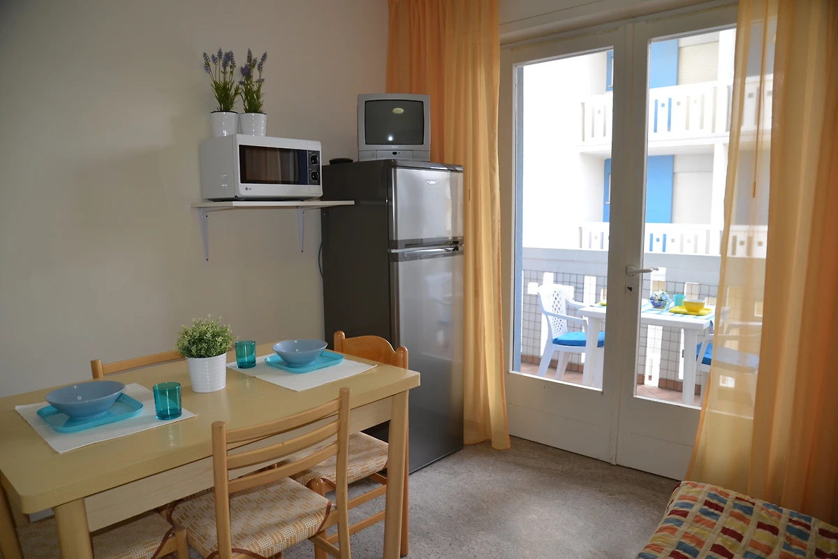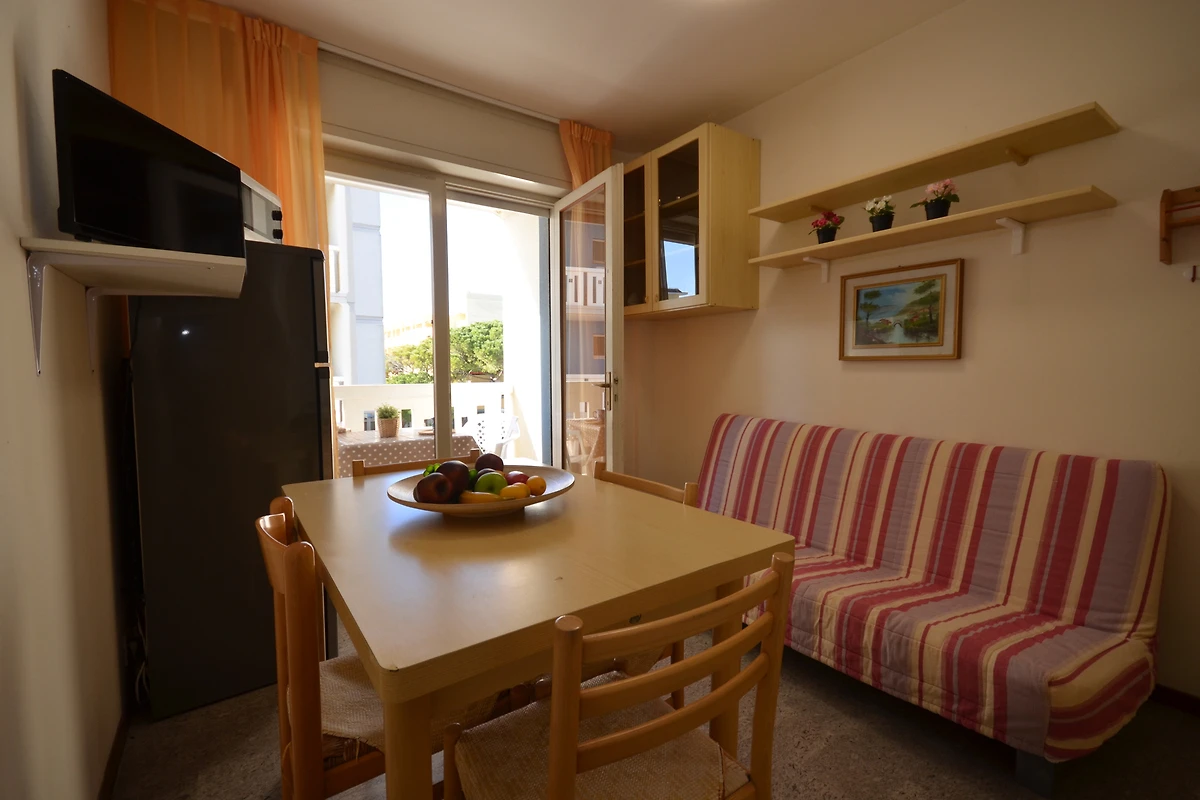 Bibione, frazione Spiaggia. L' appartamento vacanze si trova in un villaggio turistico. Parcheggio (per 1 auto) sulla proprietà.