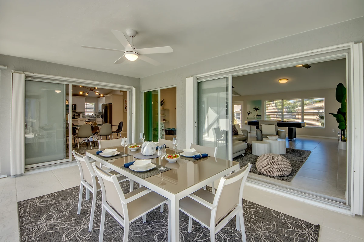 Da sottolineare anche l'ottima posizione di Villa Sunset Avenue, nella famosa zona sud-ovest di Cape Coral. Adiacente si trova il Camelot Park, con campi da tennis gratuiti, postazioni/padiglioni per il barbecue e un bellissimo parco giochi. Nelle vicinanze (raggiungibili a piedi) si trova anche Cape Harbour, il moderno e splendido porto turistico con diversi ristoranti, gelateria, musica dal vivo la sera e molto altro ancora. Vale sempre la pena di visitarlo! Anche il supermercato (Publix) e diversi ristoranti sono raggiungibili a piedi.