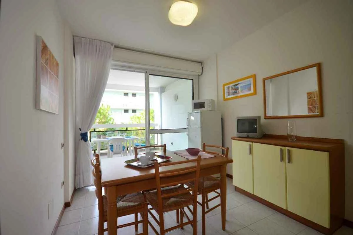 Soggiorno con 2 letti aggiuntivi su divano letto doppio, TV, zona pranzo, accesso al balcone e Al posto del divano letto matrimoniale nel soggiorno, può esserci un letto a castello nella camera da letto. Camera da letto con 1 letto matrimoniale e al posto del divano letto matrimoniale in soggiorno, può esserci anche un letto a castello in camera da letto. Angolo cucina nel soggiorno con stufa a gas, cappa aspirante, frigorifero, microonde e caffettiera. Bagno con doccia, 1 lavandino, WC e bidet.